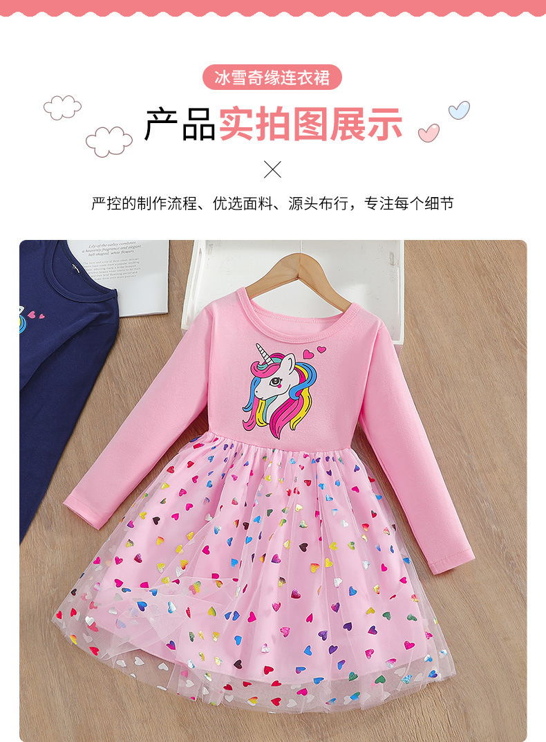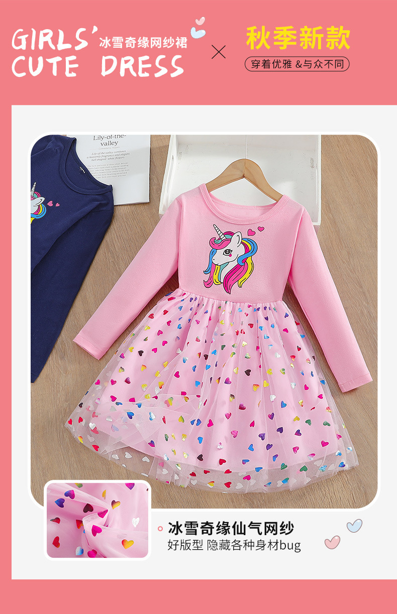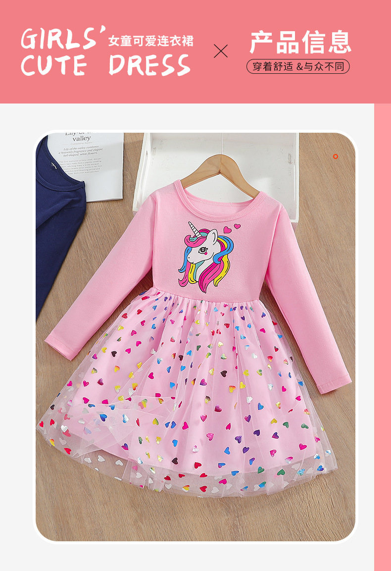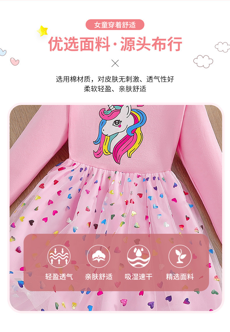 대외 무역 봄 새로운 소녀 중소 어린이 거즈 스커트 면화 긴 소매 무지개 말 어린이 핑크 소녀 원피스 조수스토어 가기