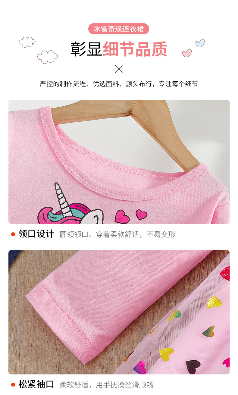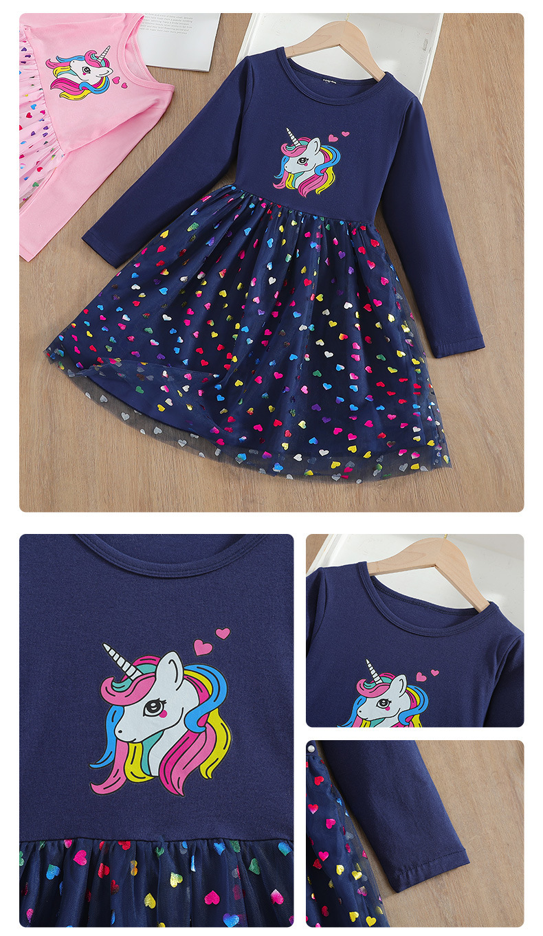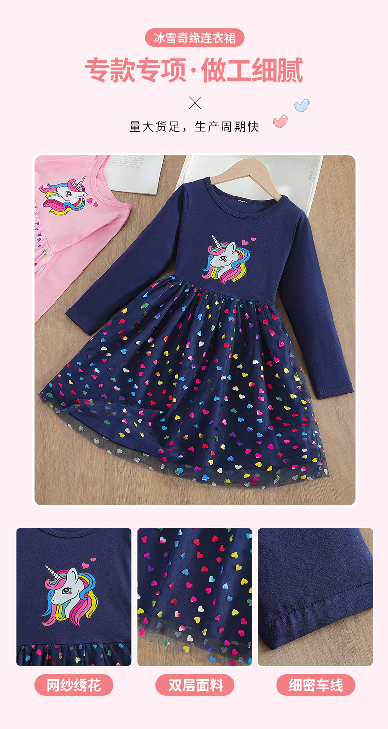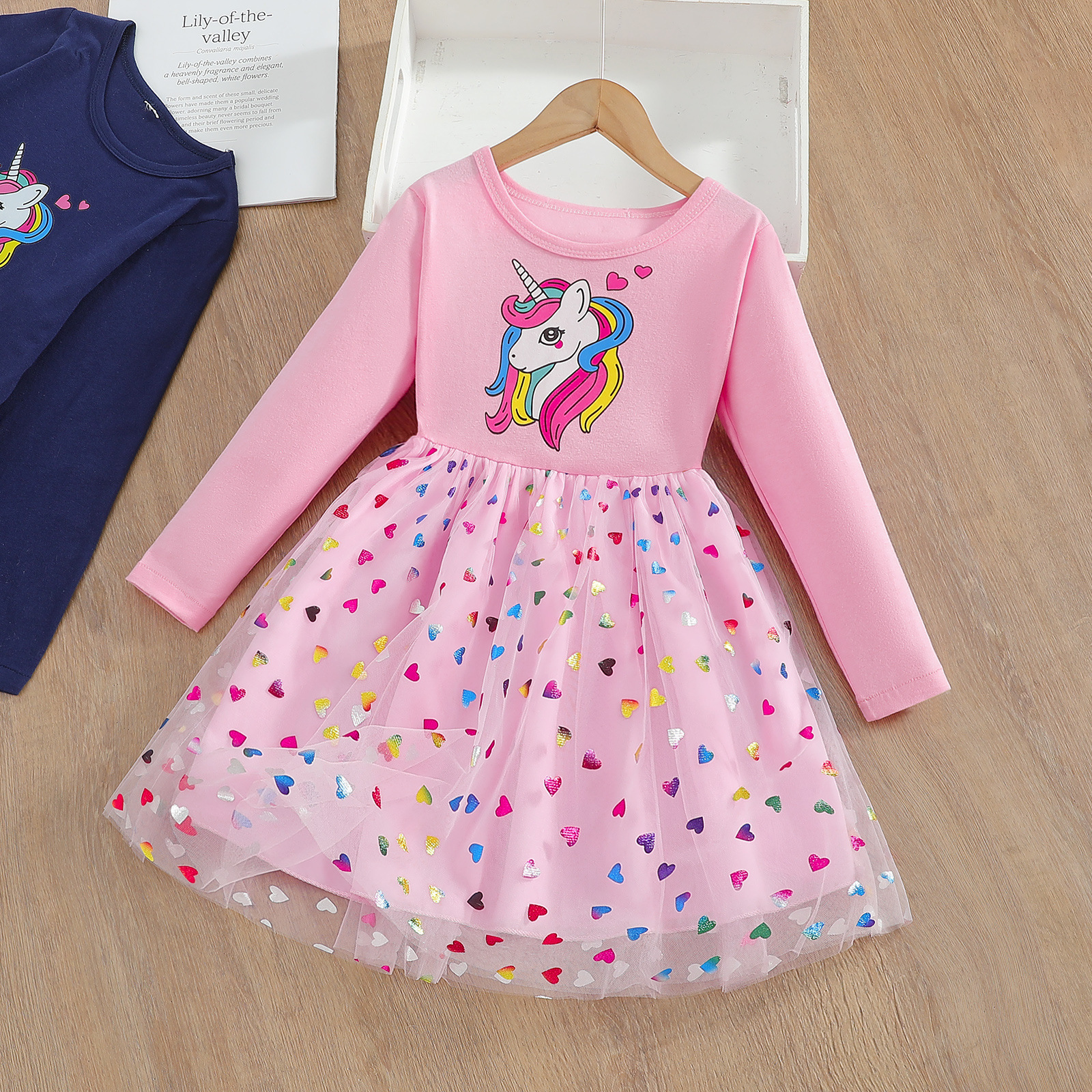 대외 무역 봄 새로운 소녀 중소 어린이 거즈 스커트 면화 긴 소매 무지개 말 어린이 핑크 소녀 원피스 조수스토어 가기