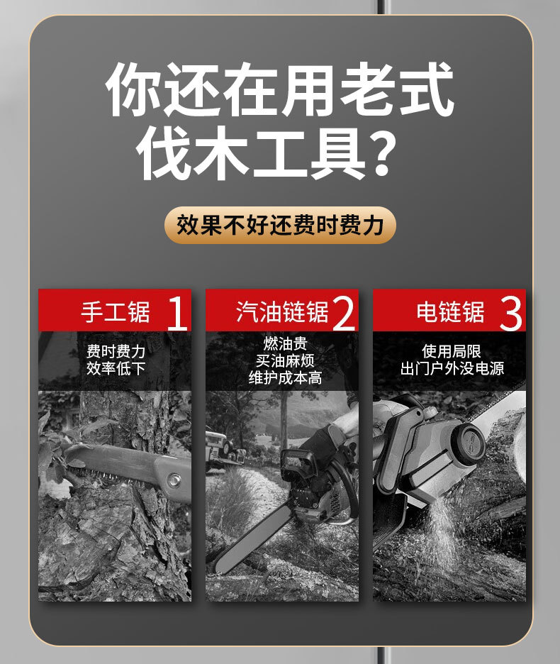 고출력 휴대용 충전식 리튬 전기 톱 가정용 하드웨어 전기 야외 벌목 나무 가지 치기 전기 톱 도매스토어 가기