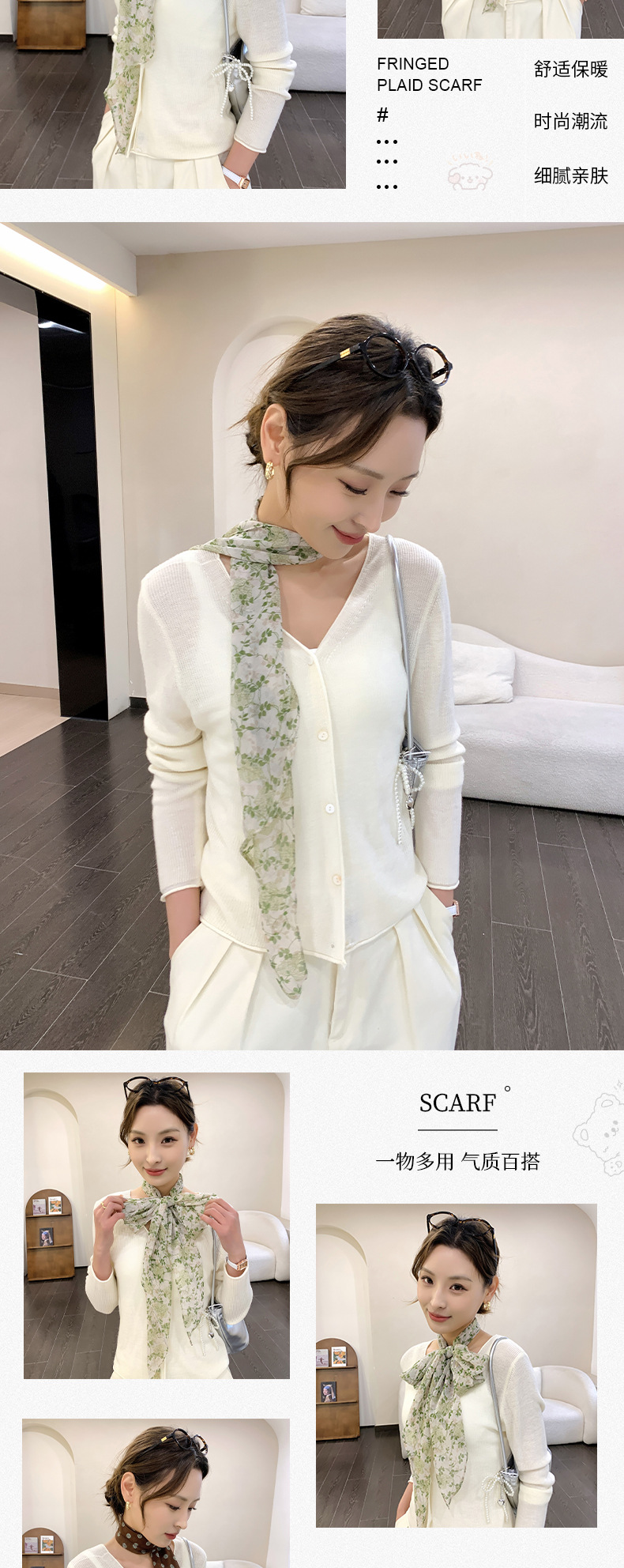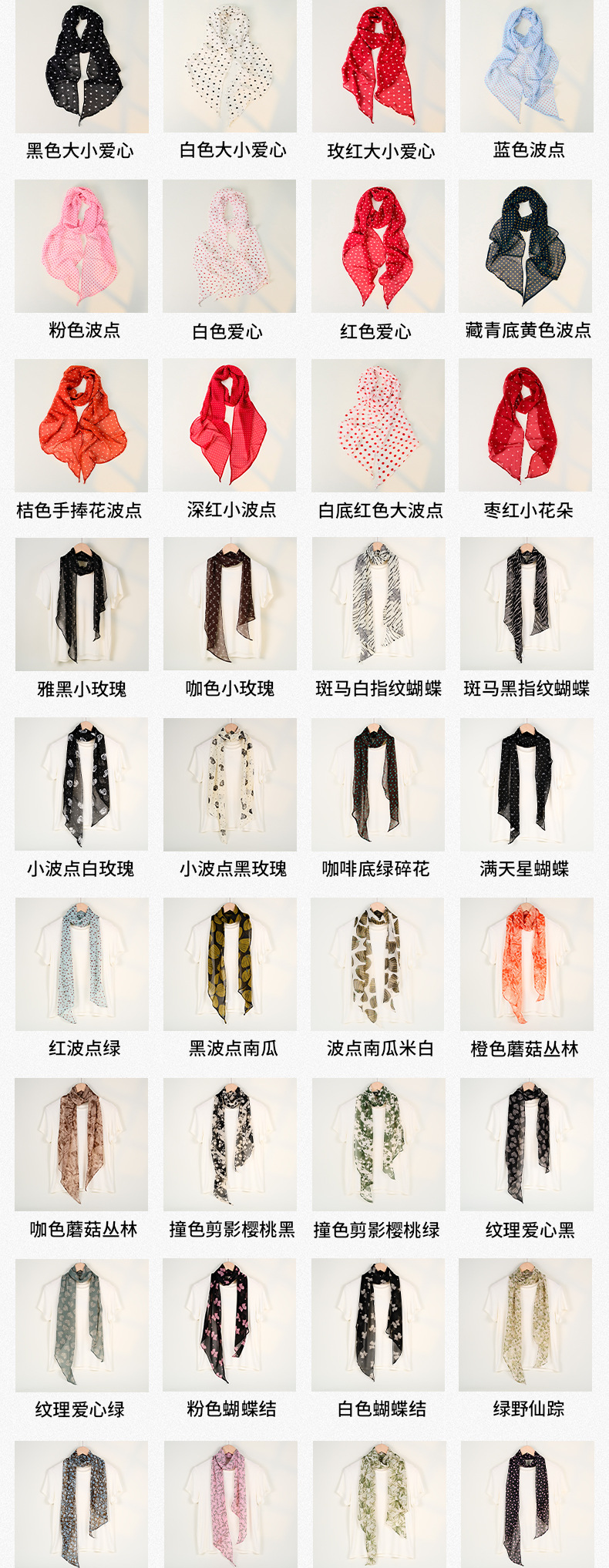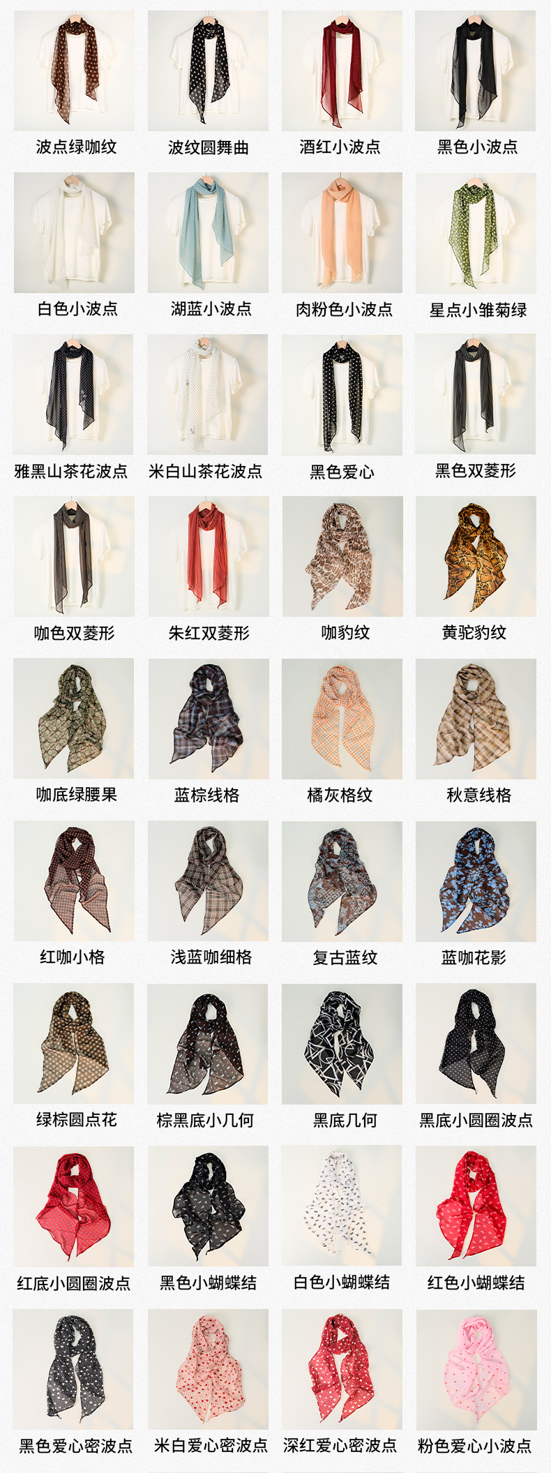 새로운 프랑스 스타일 긴 스카프 여성의 봄과 여름 경량 Georgette 스카프 캐주얼 태양 보호 외부 스카프 장식