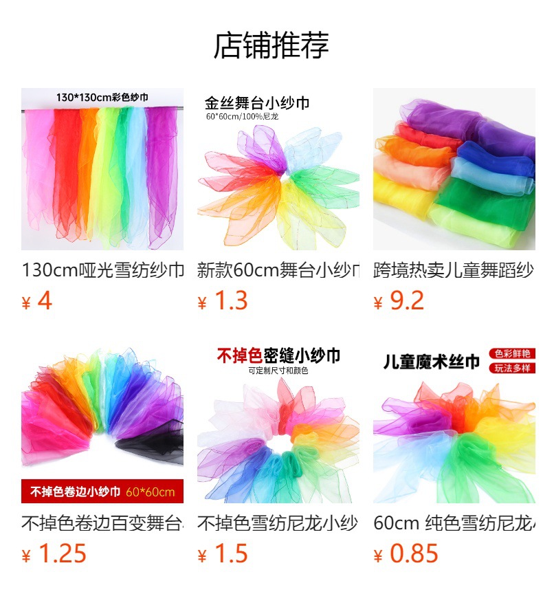 대외 무역 뜨거운 판매 매트 스퀘어 나일론 쉬폰 거즈 스카프 어린이 무대 공연 스카프 6 색 세트 공장 직접 판매스토어 가기