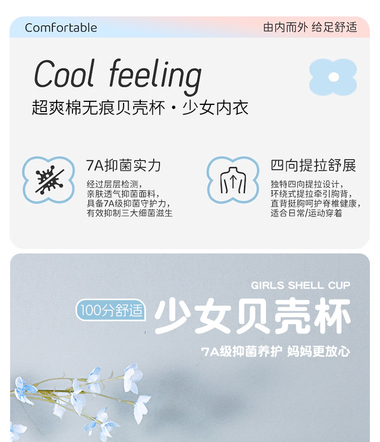 개발의 첫 번째 단계 원활한 속옷 학생 파티 소녀 중학교 학생 조끼 안티 범프 항균 소녀 브래지어스토어 가기