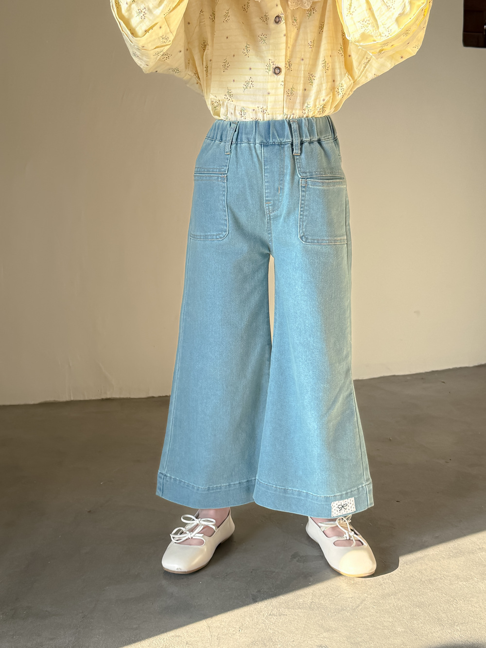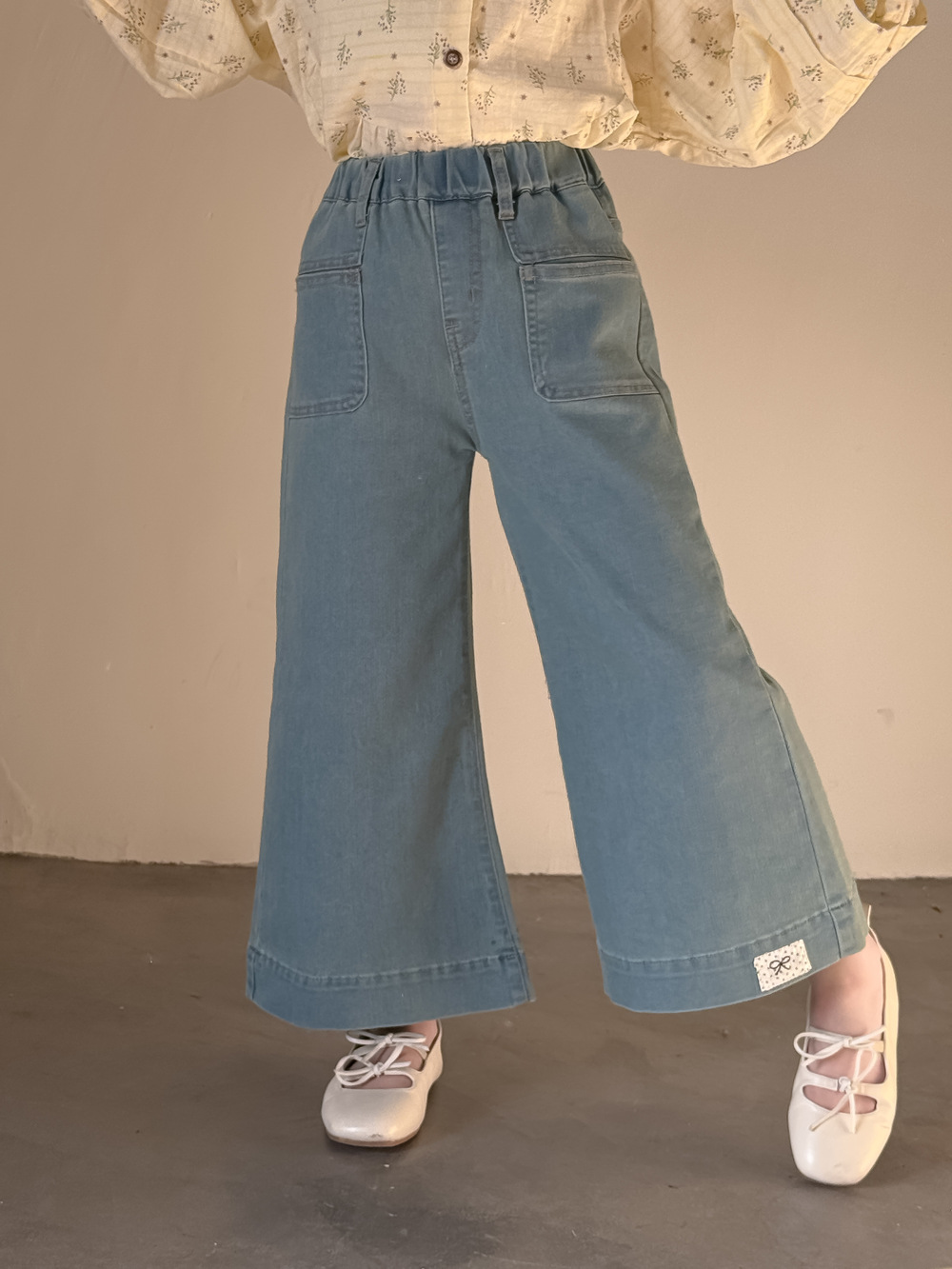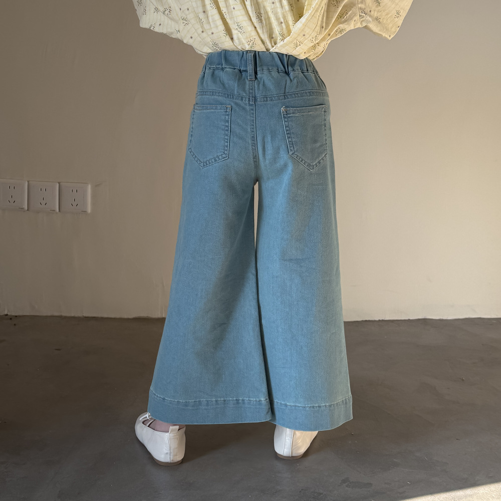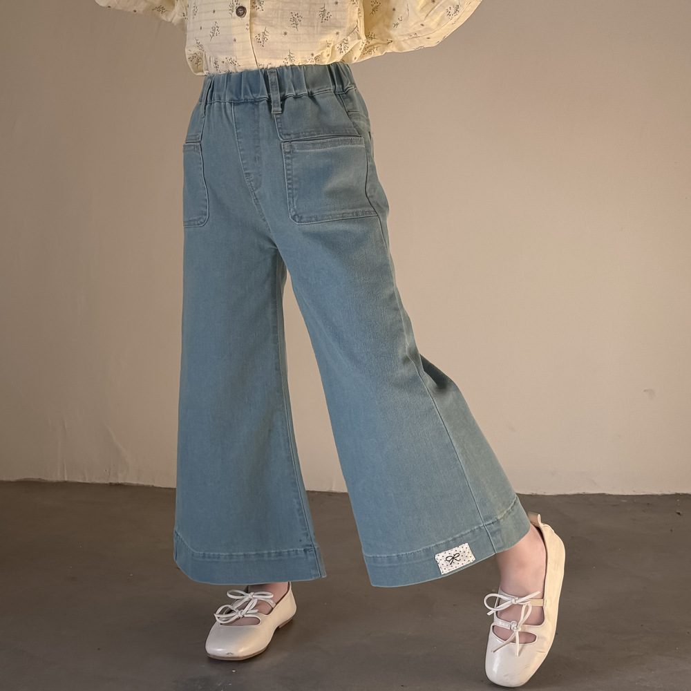 아동용 바지 2026 봄 신상 여아 한국 스타일 단색 캐주얼 데님 롱 팬츠 아동용 다용도 루즈핏 플레어 팬츠 모샤오멍