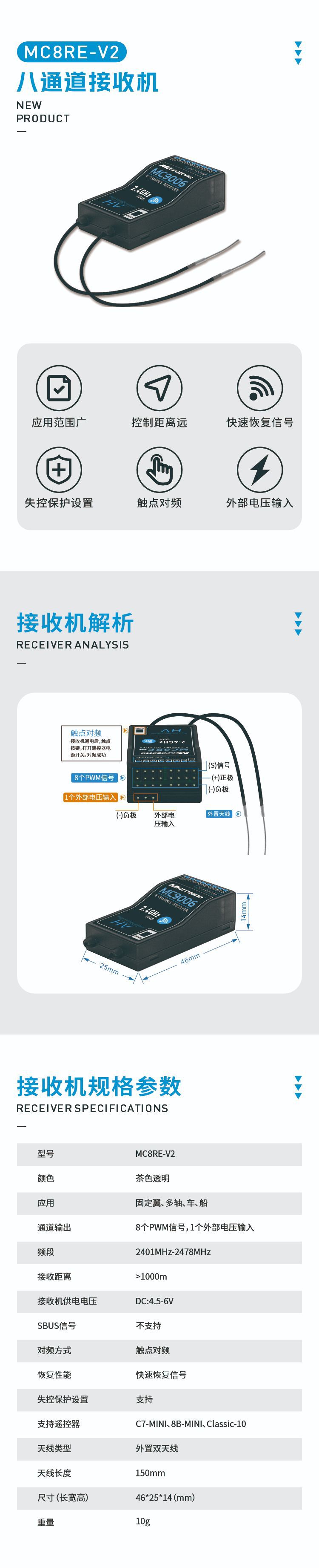 MC8RE-V2 수신기 C7mini 원격 제어 수신기 7 채널 반환 MC7MC 마이크 도매