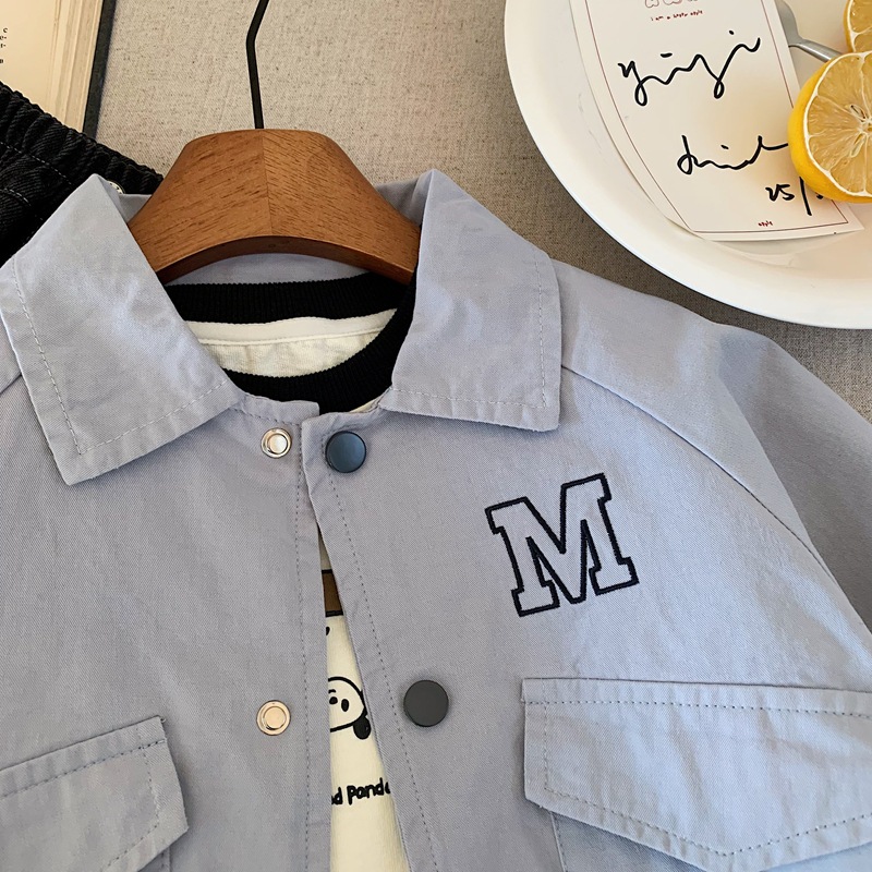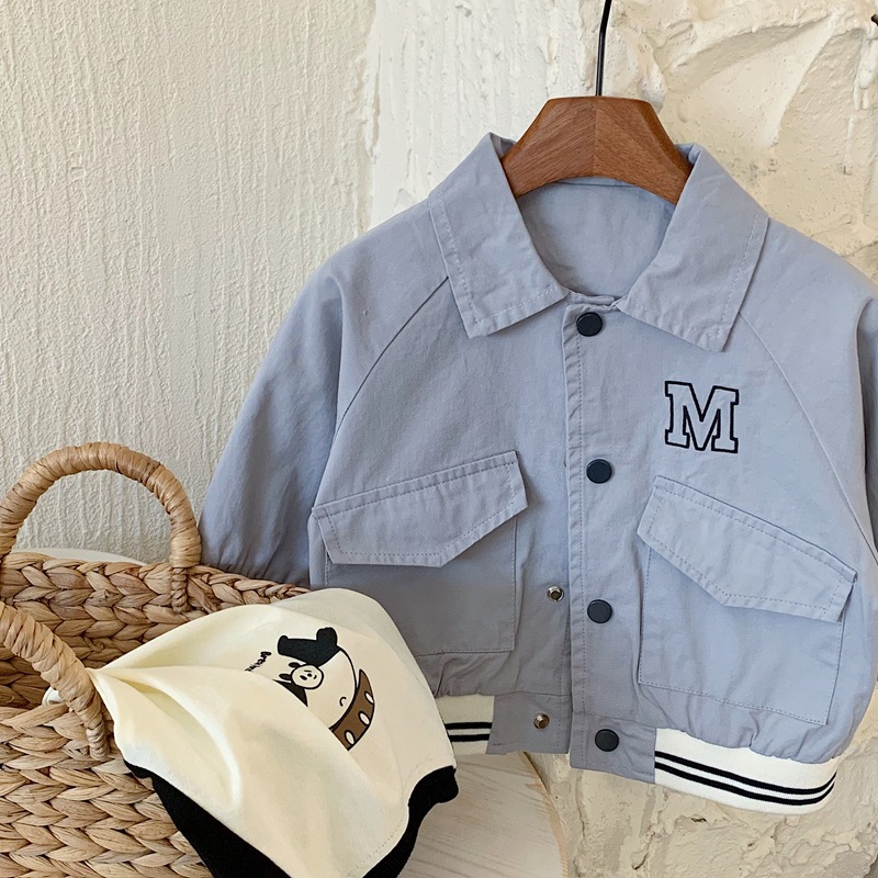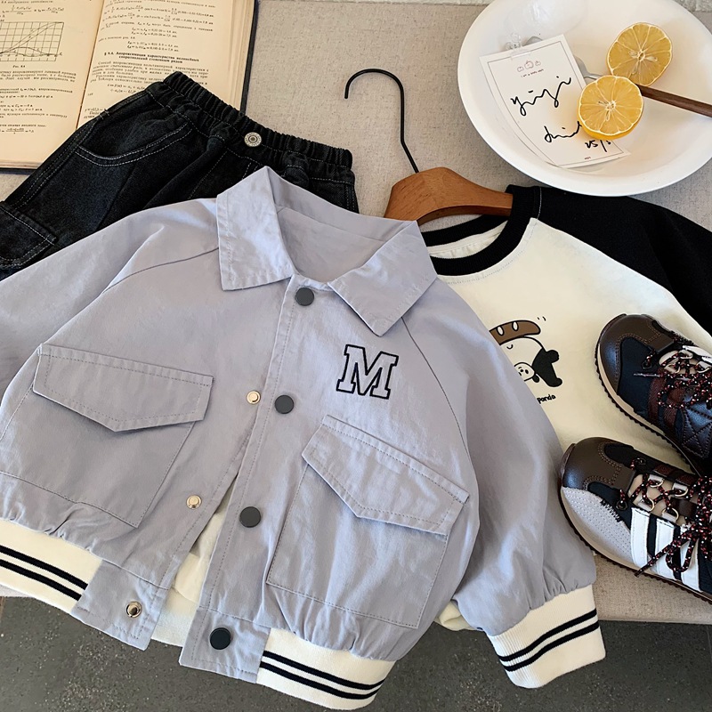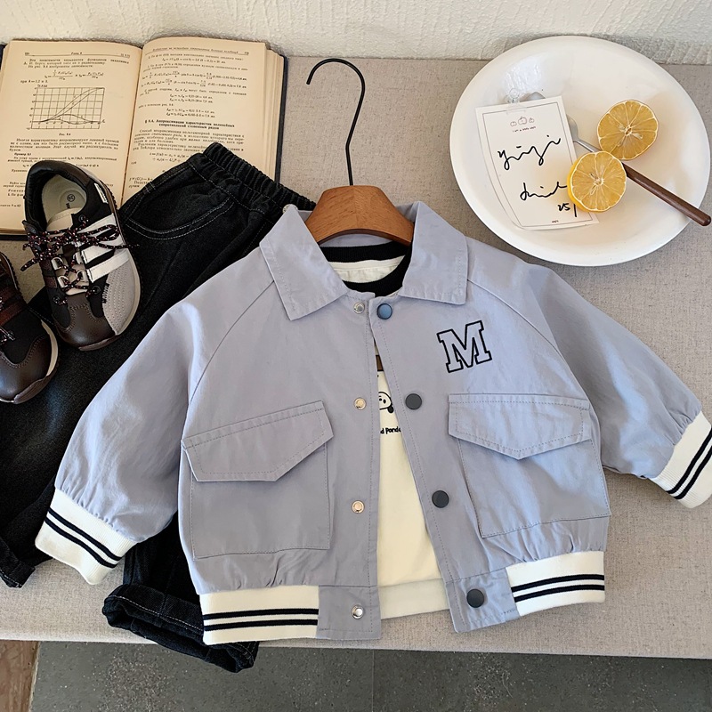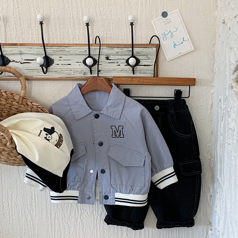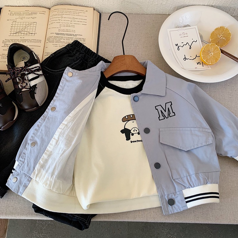 소년 코트 어린이 야구 세트 2025 년 봄과 가을 새로운 어린이 강아지 잘 생긴 블루 재킷 탑 자수 편지스토어 가기