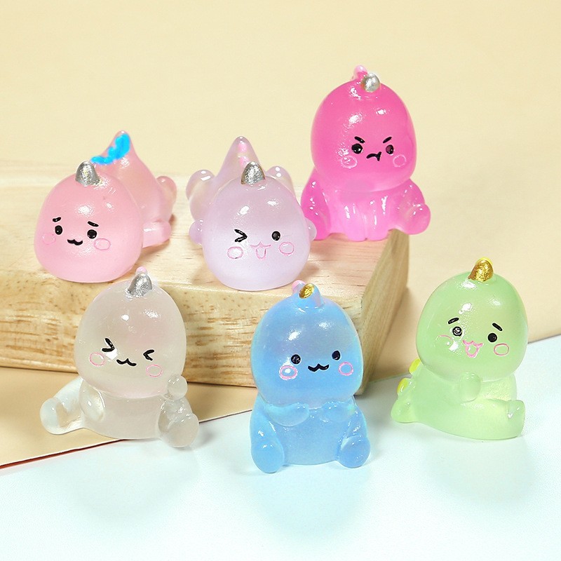 • 머리가 기울어진 다채로운 작은 공룡 야광 혼합 팩
