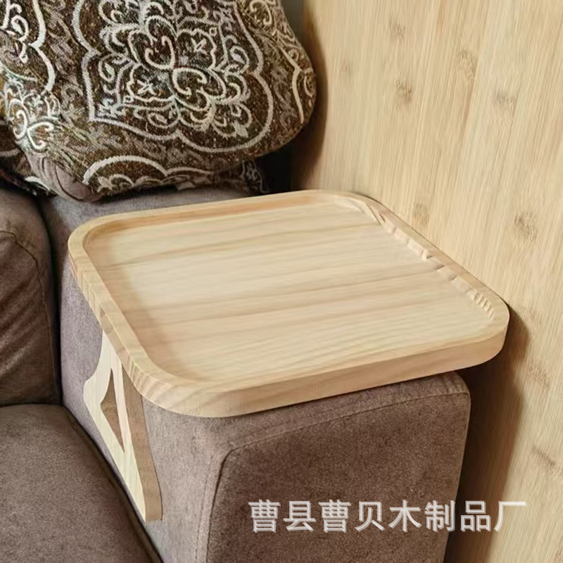 나무 소파 팔걸이 트레이 라운드 접이식 사이드 테이블 모닝 트레이 캐주얼 우드 컬러 소파 팔걸이 디너 트레이