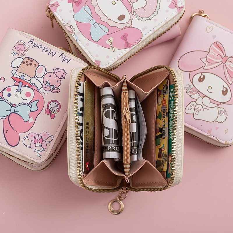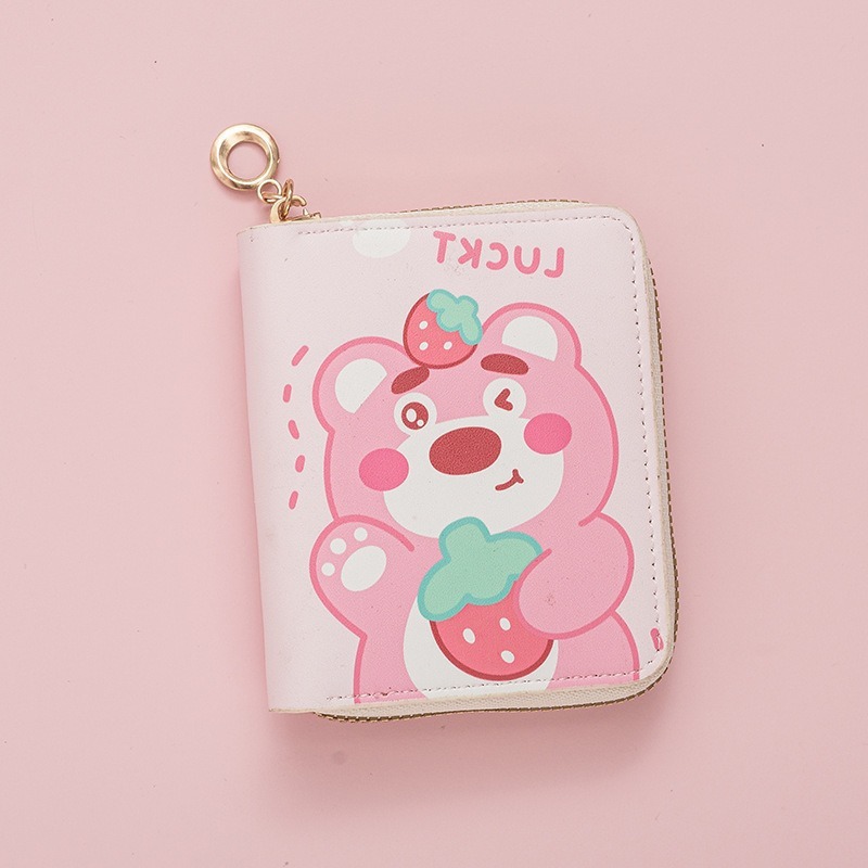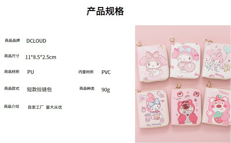딸기곰 멜로디 동전 지갑 애니메이션 만화 어린이 여학생 짧은 지퍼형 크로스보더 애니메이션 동전 지갑