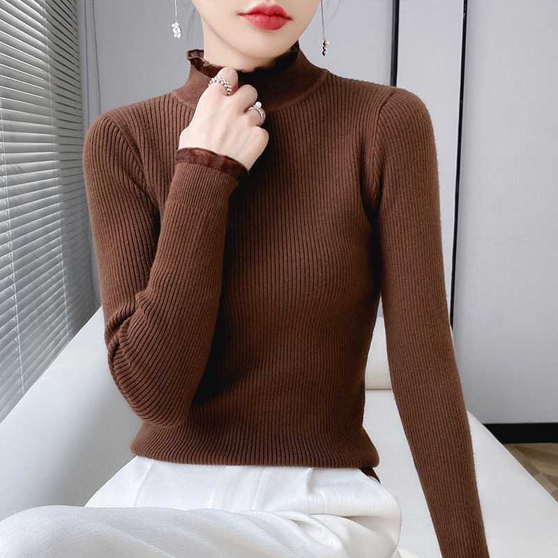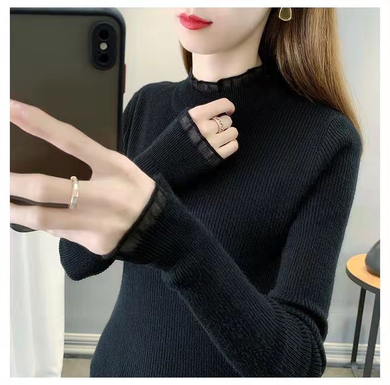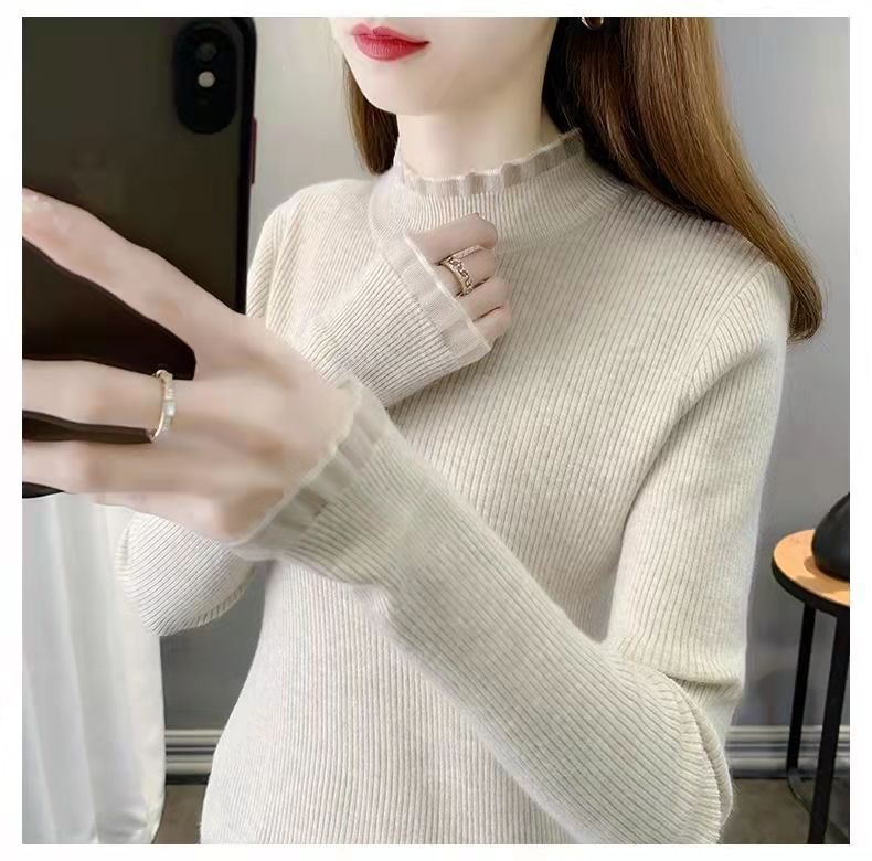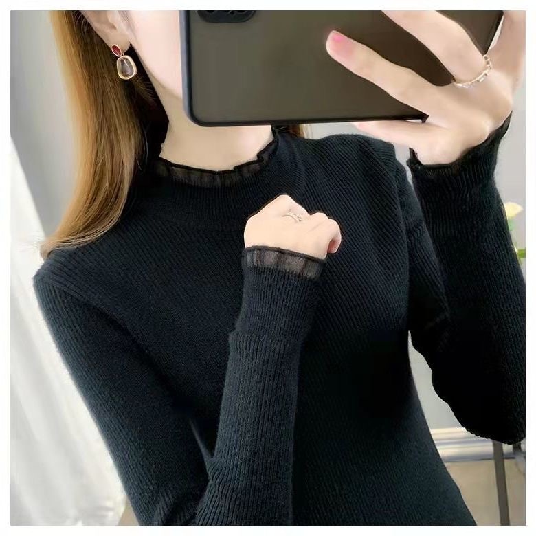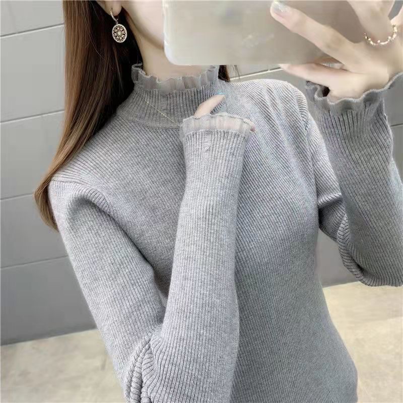 하프 터틀넥 스웨터 스웨터 여성 2024 가을과 겨울 새로운 스웨터 슬림베이스 셔츠 탑 올 매치 외국 스타일 여성 의류스토어 가기