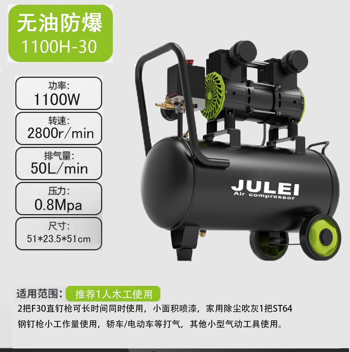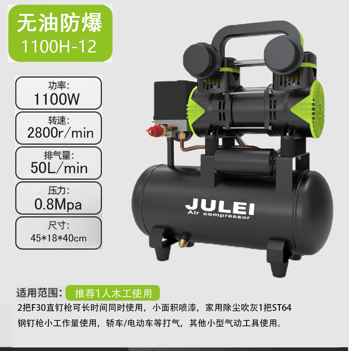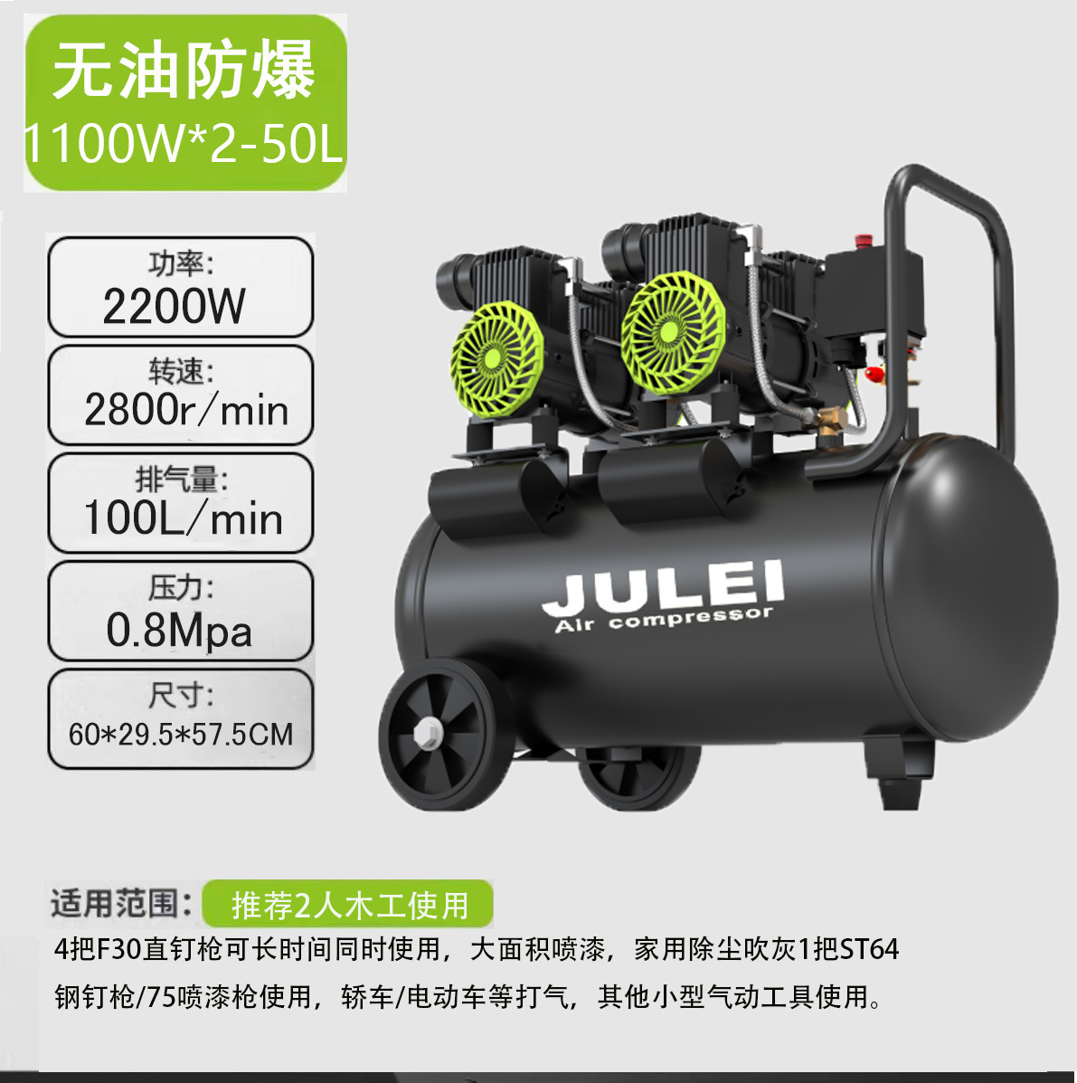 수출 맞춤형 무오일 저소음 소형 220V 에어 컴프레서 페인트 분사 먼지 제거 가정용 목공 못총 에어펌프스토어 가기