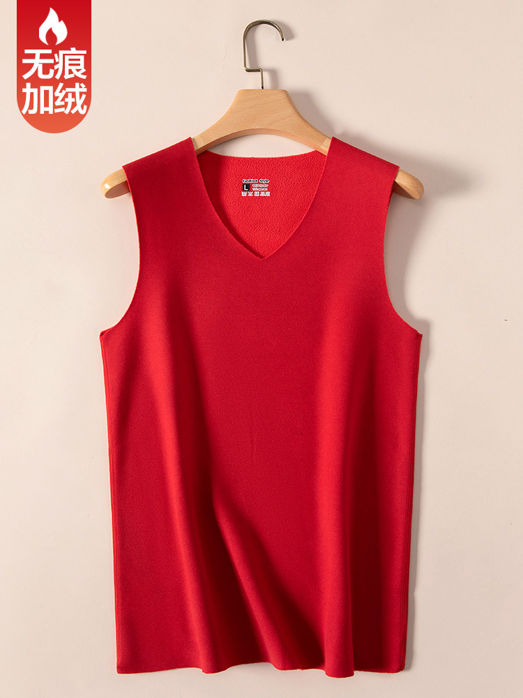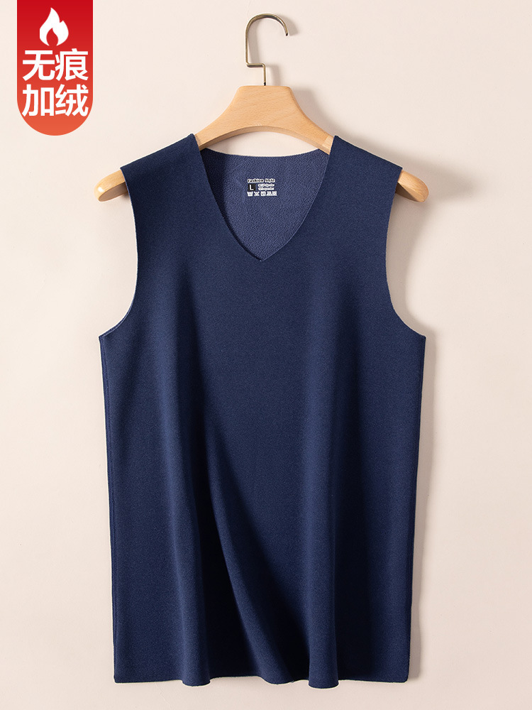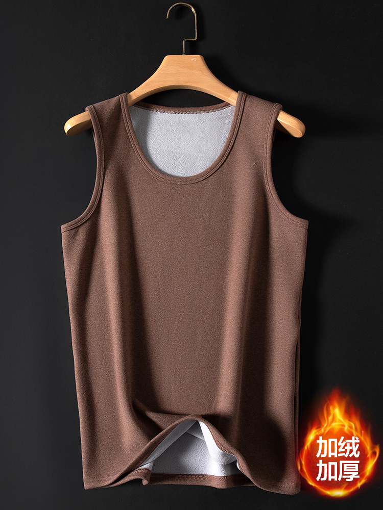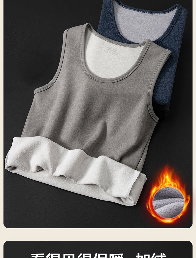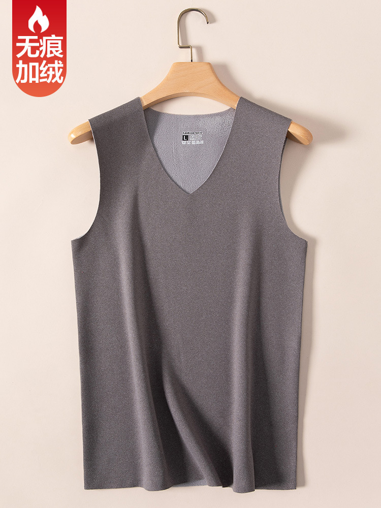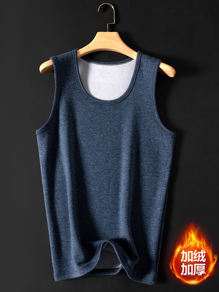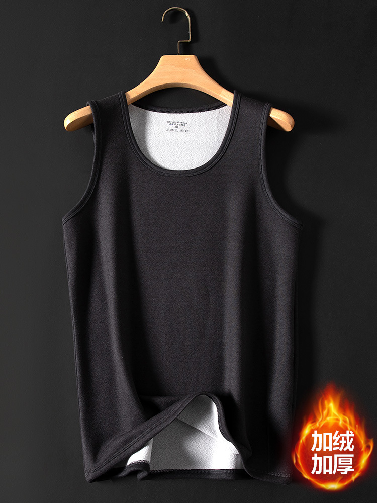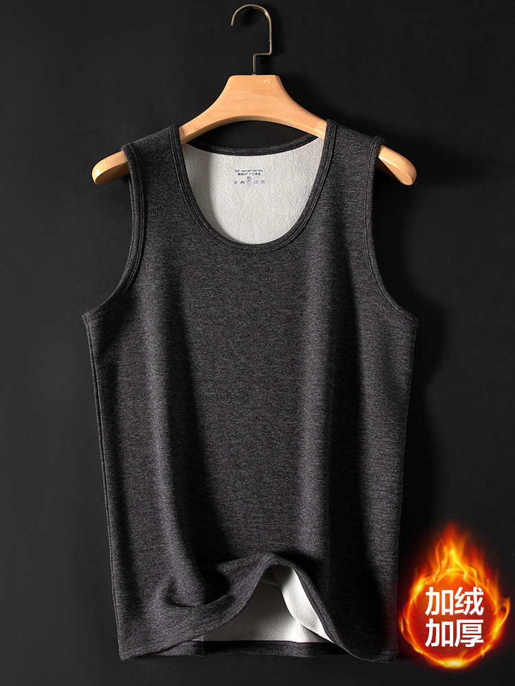 기모 두꺼운 따뜻한 조끼 남자의 내복 가을 및 겨울 가운 어깨 추적없는 벨벳 난방 슬림 핏베이스 탑 코튼 조끼