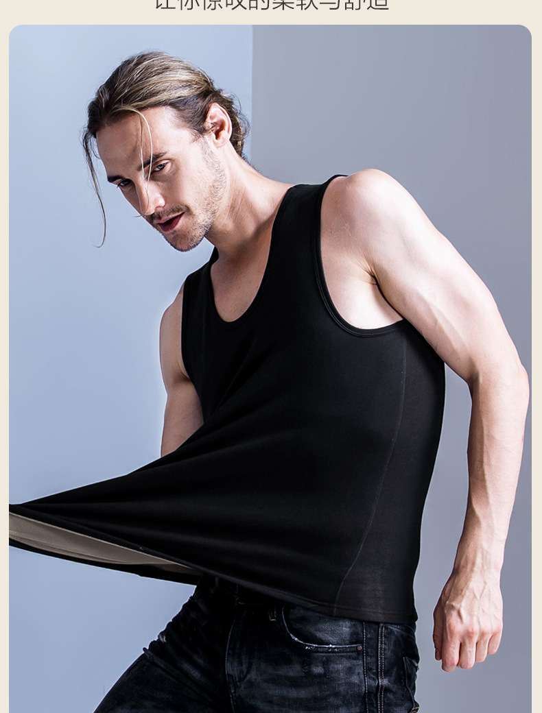 기모 두꺼운 따뜻한 조끼 남자의 내복 가을 및 겨울 가운 어깨 추적없는 벨벳 난방 슬림 핏베이스 탑 코튼 조끼스토어 가기