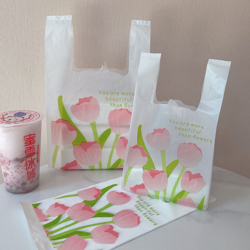 튤립 저압 유백색 플라스틱 포장 가방 타로 둥근 구운 요정 잔디 얼음 가루 테이크 아웃 스톨 백 디저트 구운 9 벨벳스토어 가기