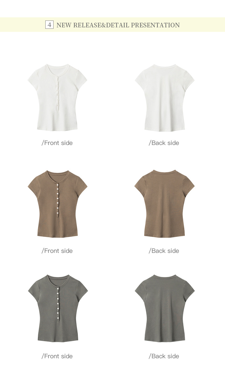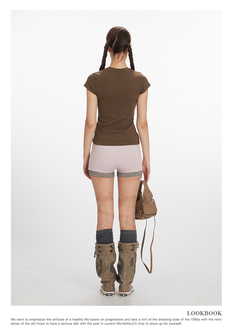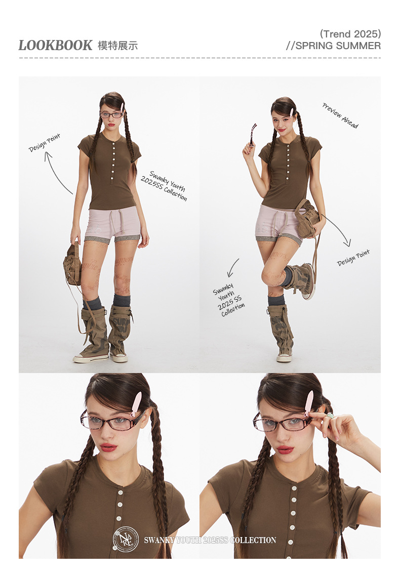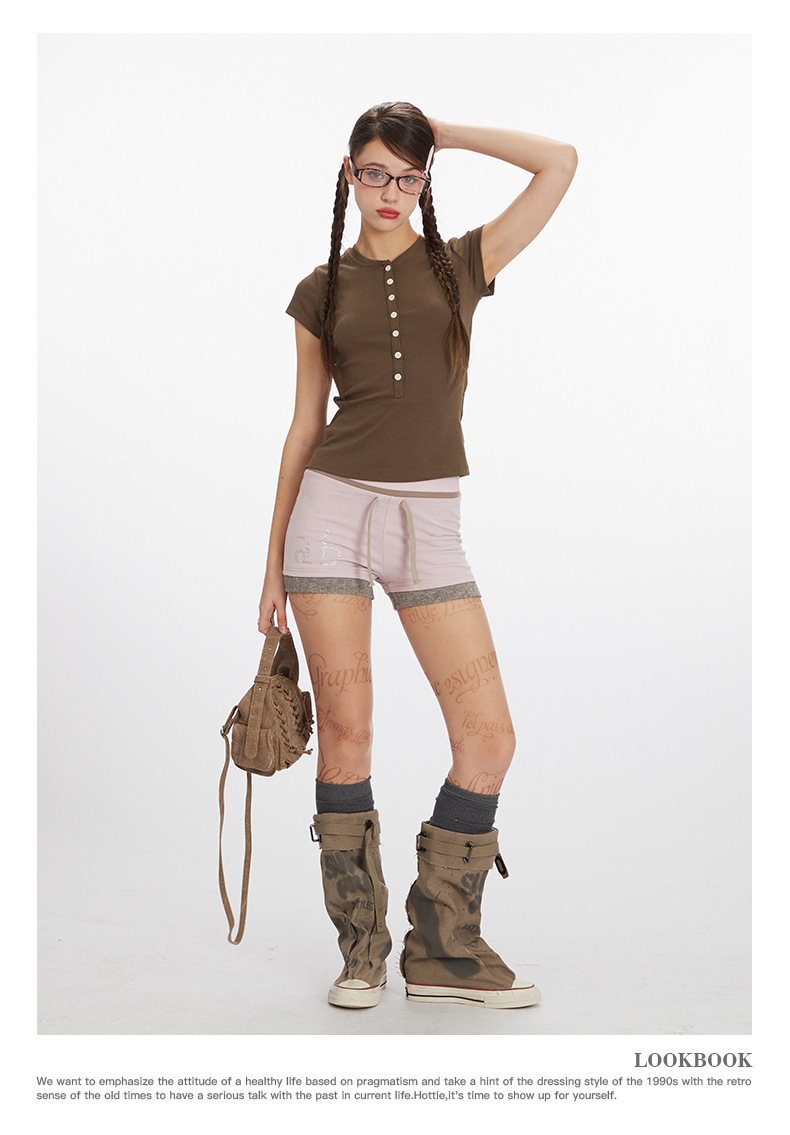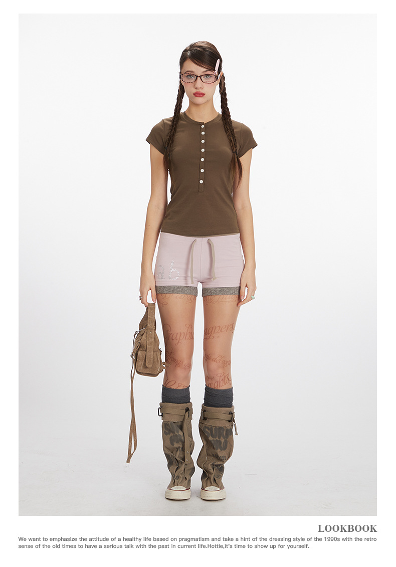 HeyHenry 2025 아메리칸 스타일 스파이스 걸스 하프 오픈 넥 슬림 반팔 티셔츠 여성용 여름 쇼트 탑 INS스토어 가기