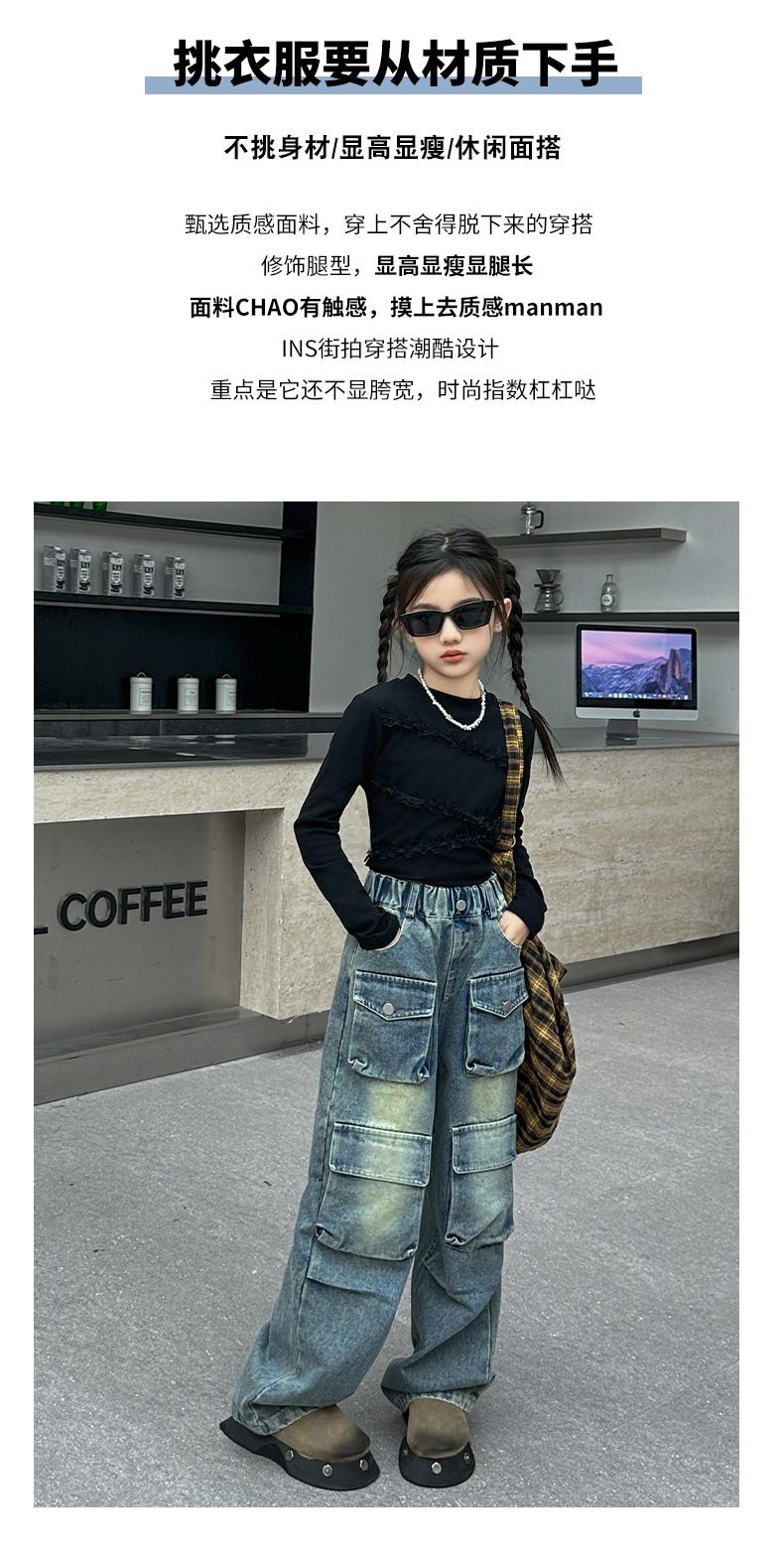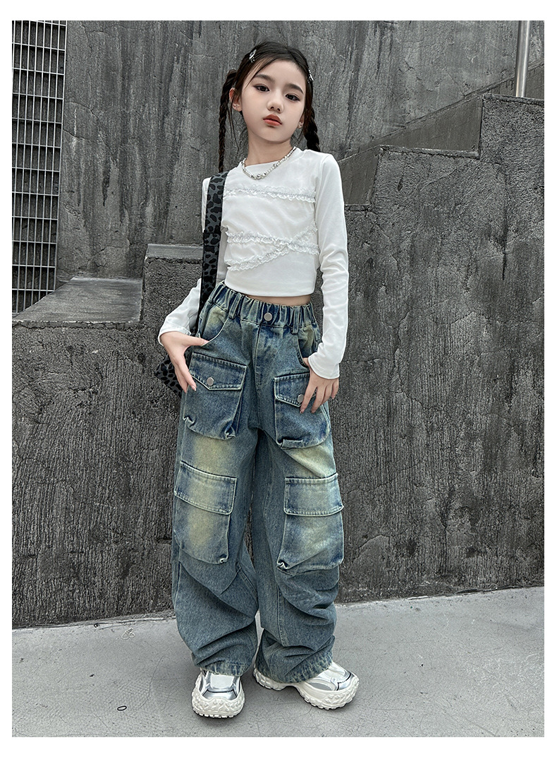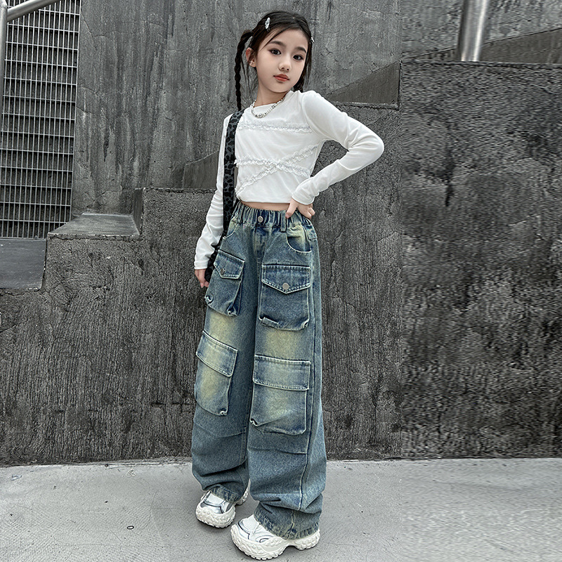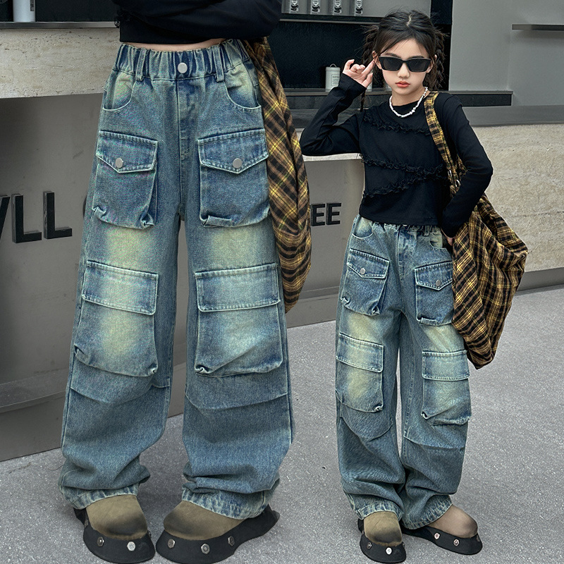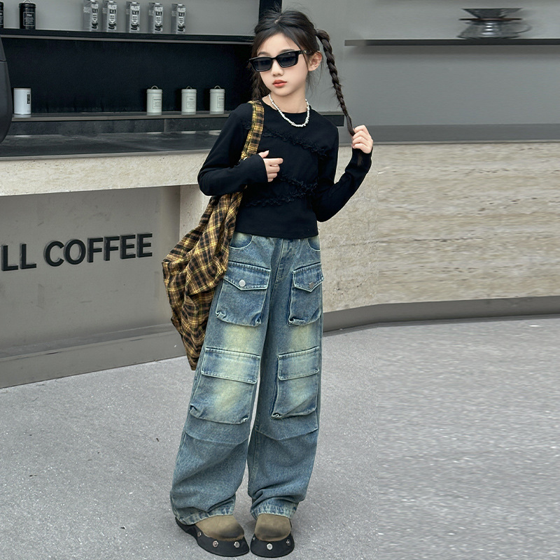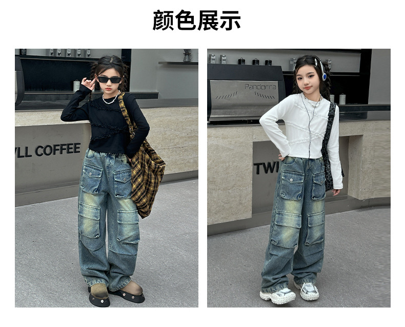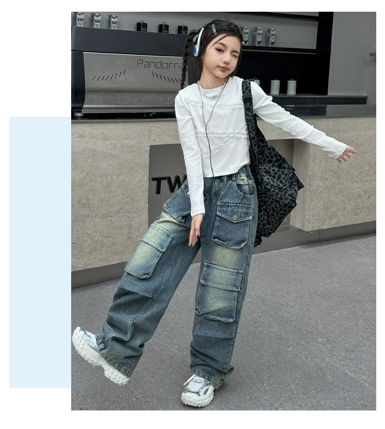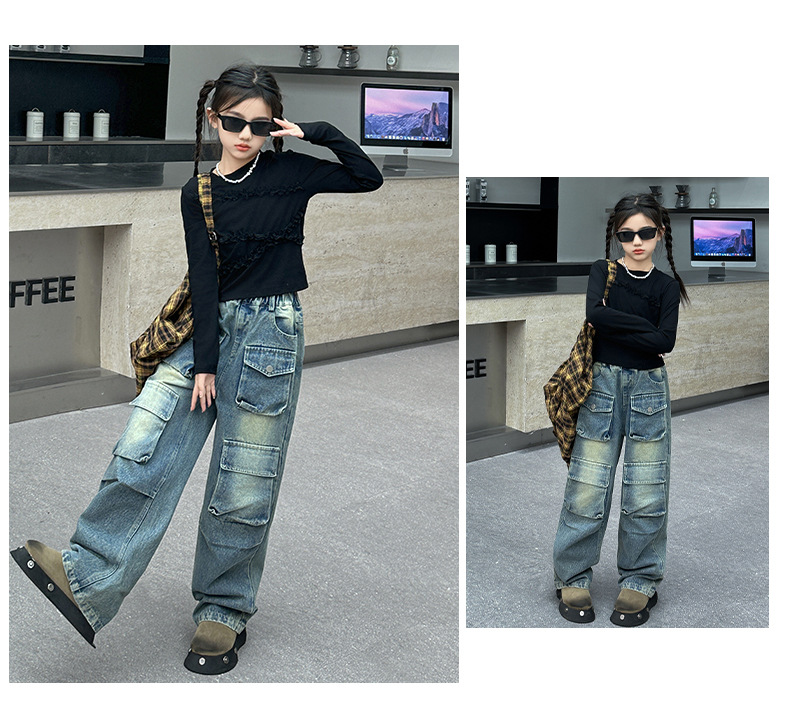 소녀 작업복 청바지 세트 봄과 가을 바지 2025 새로운 투피스 소녀의 서양식 바지스토어 가기
