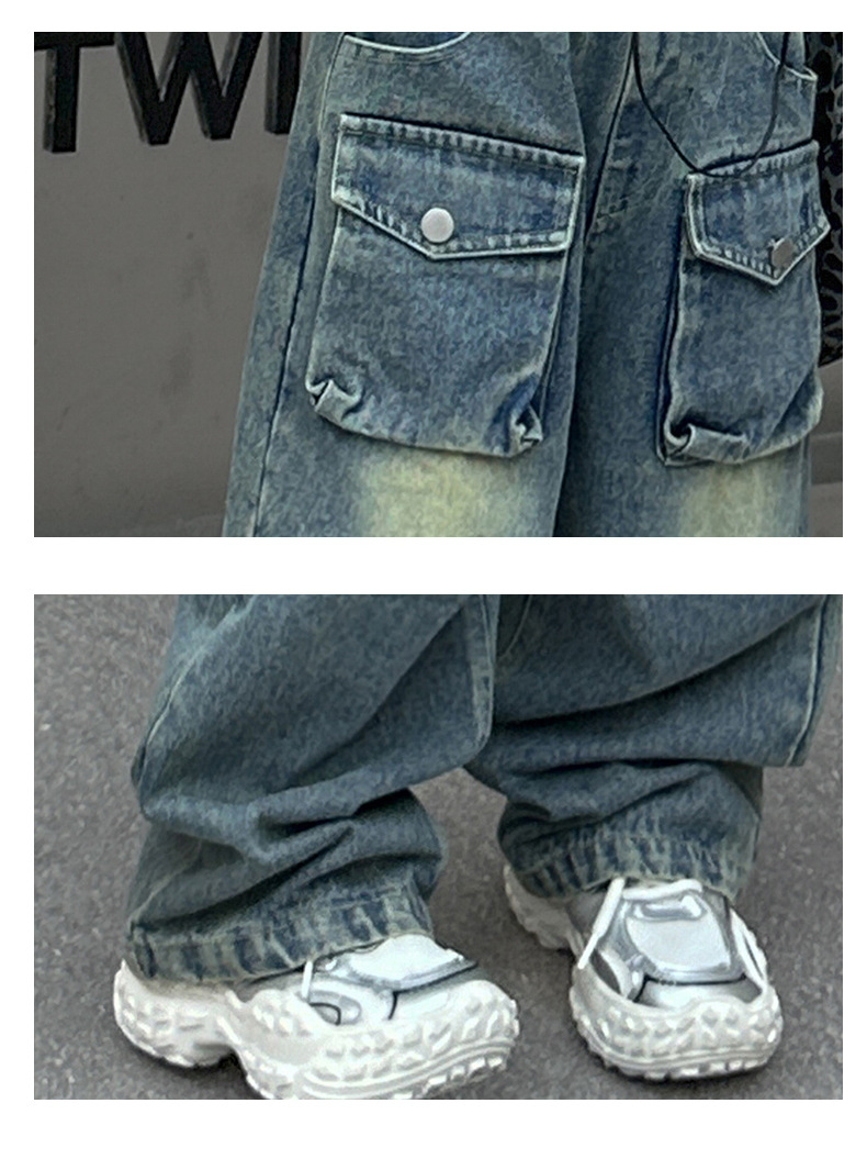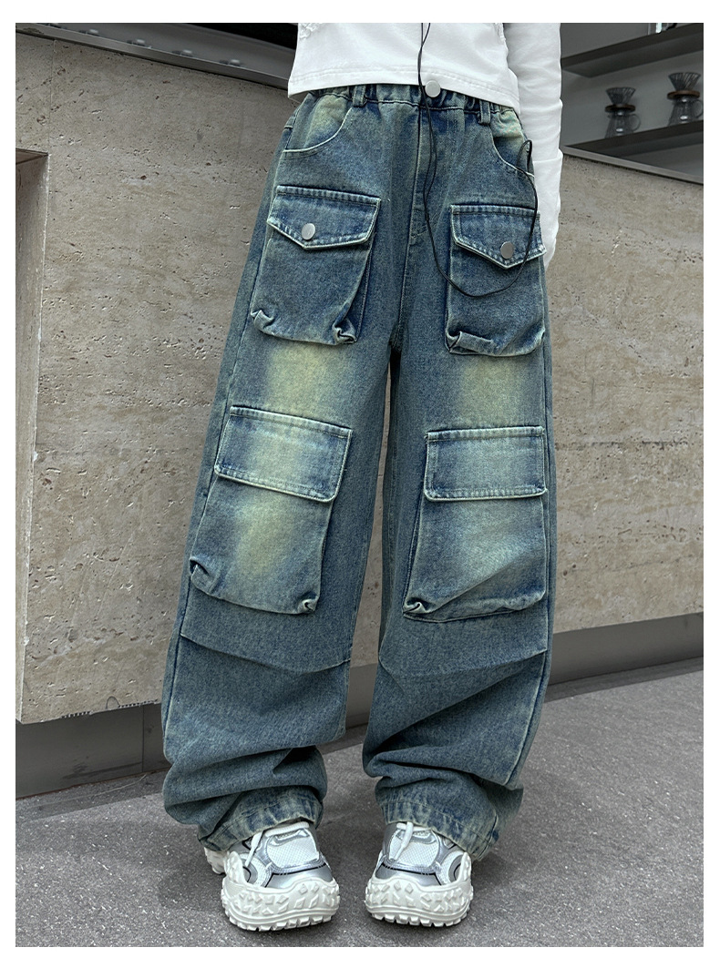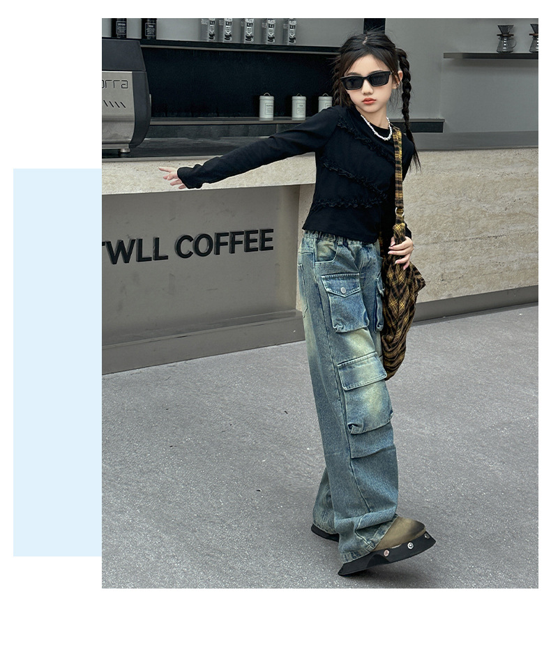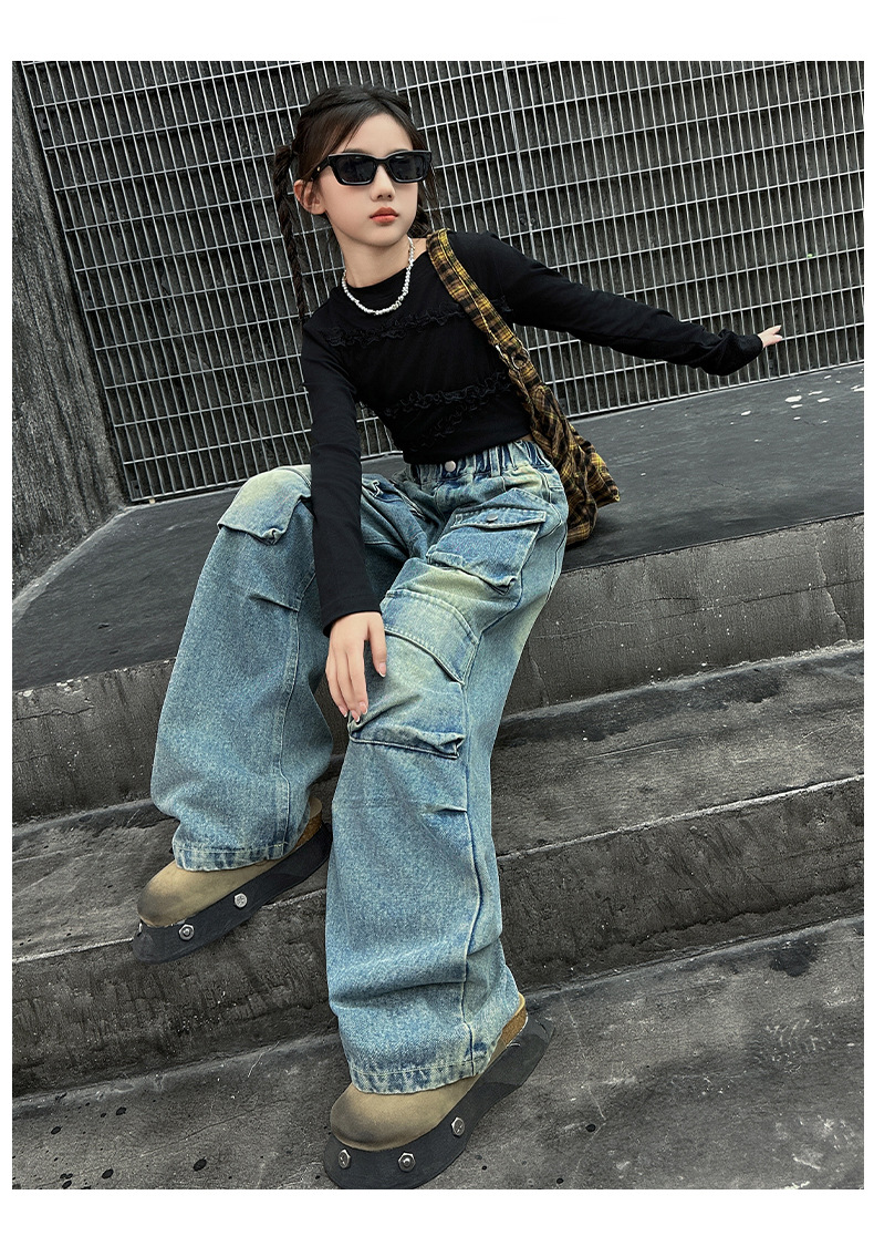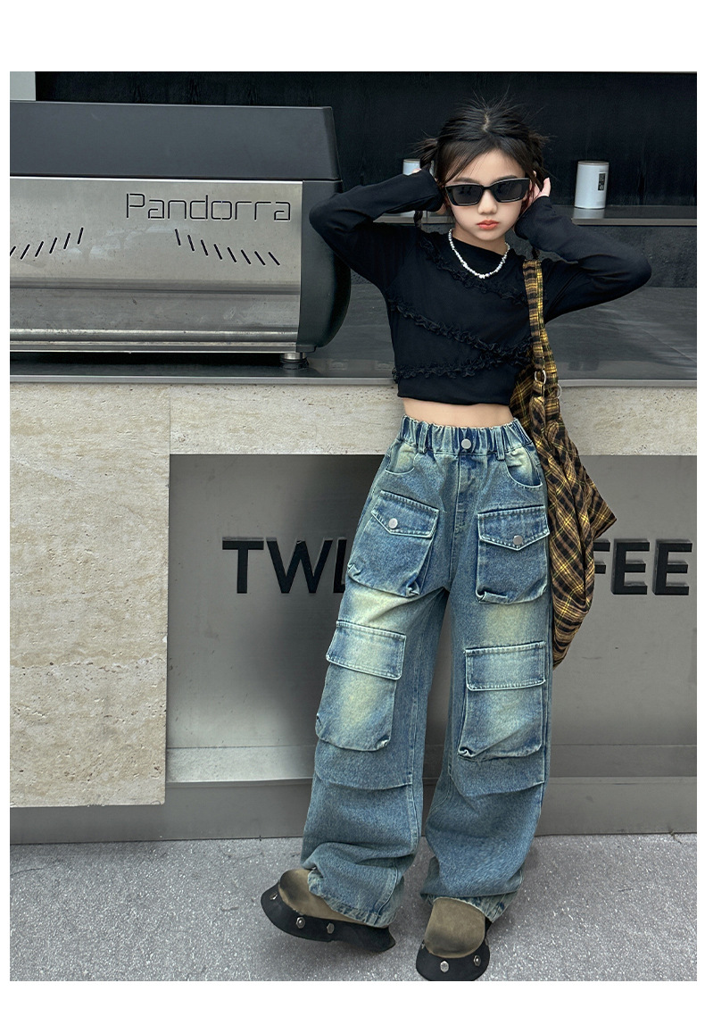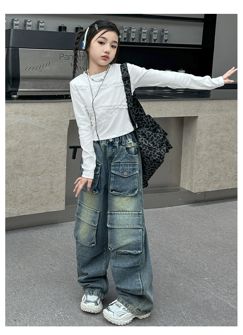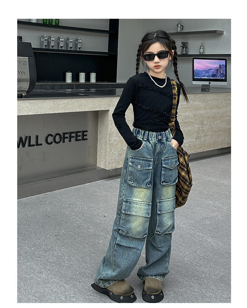 소녀 작업복 청바지 세트 봄과 가을 바지 2025 새로운 투피스 소녀의 서양식 바지스토어 가기