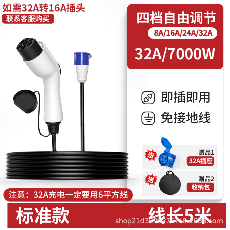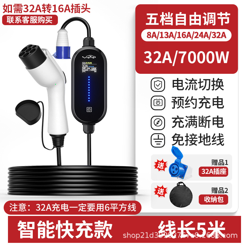 새로운 에너지 충전 총 전기 자동차 BYD 충전 BAIC 휴대용 테슬라 16A 충전기 7kw