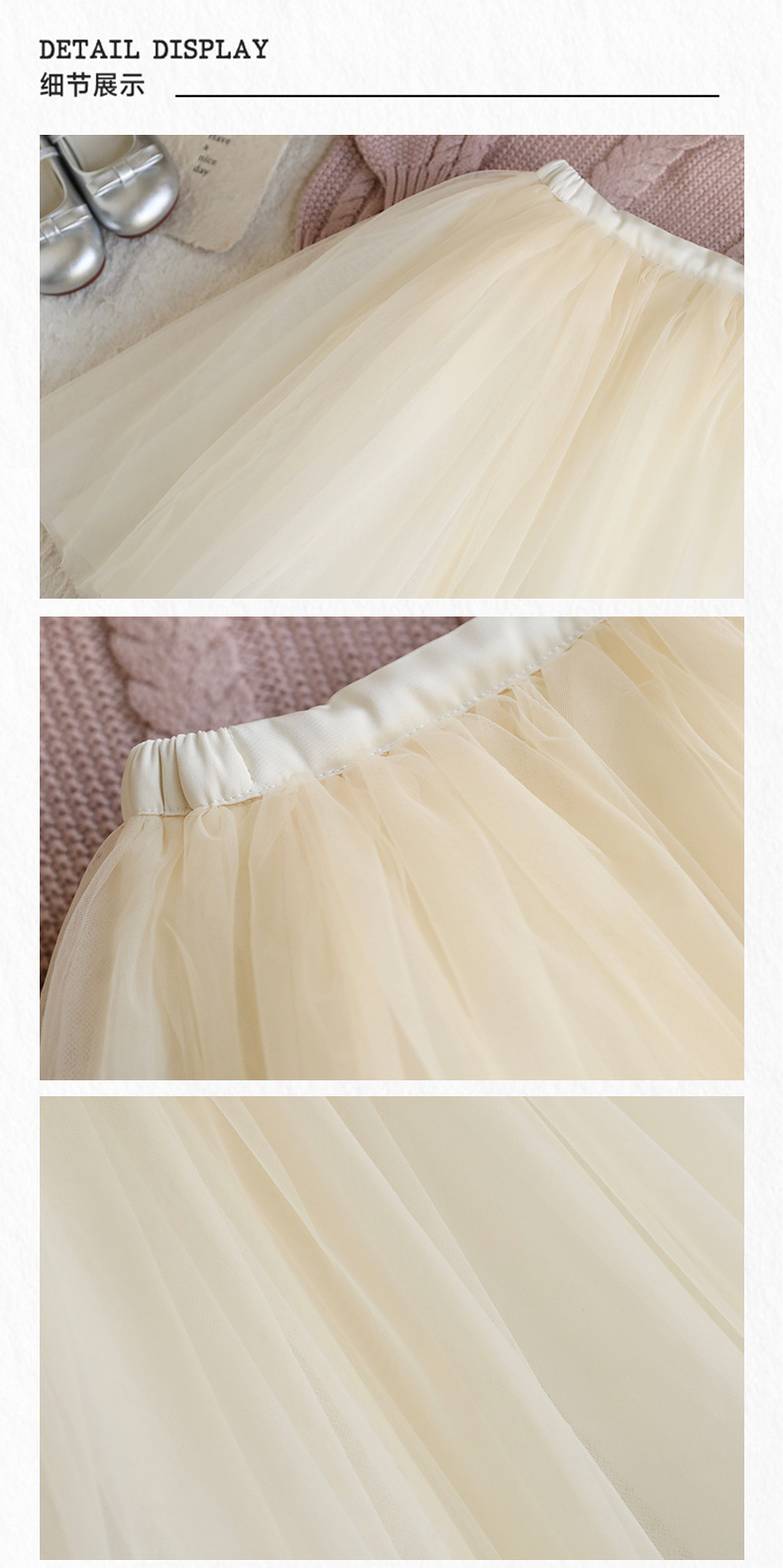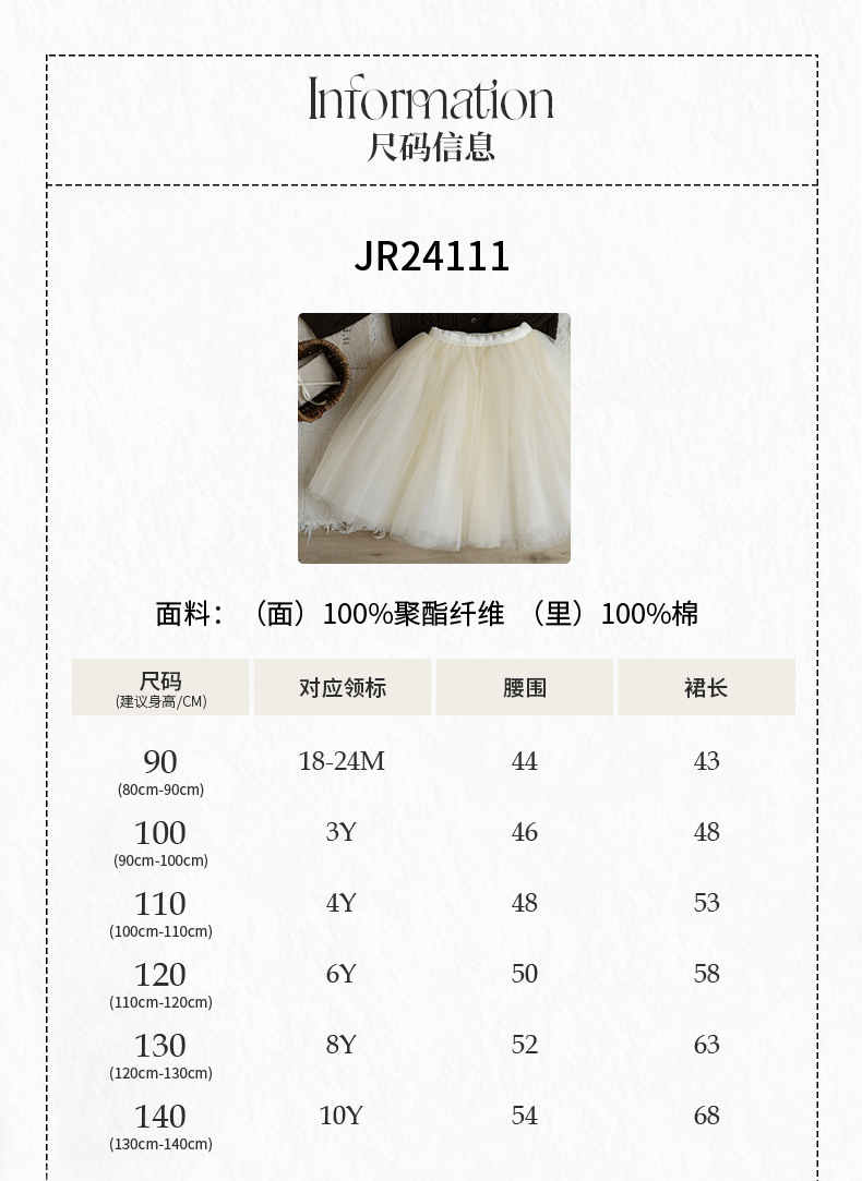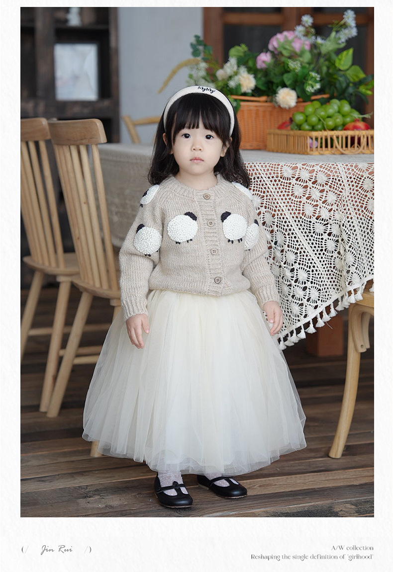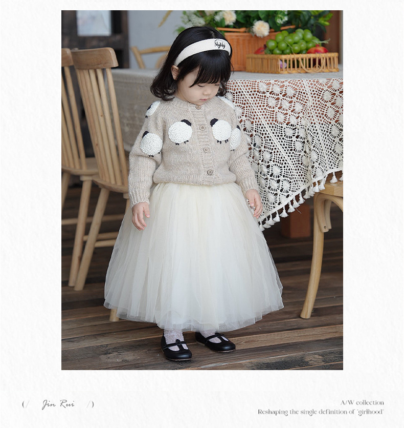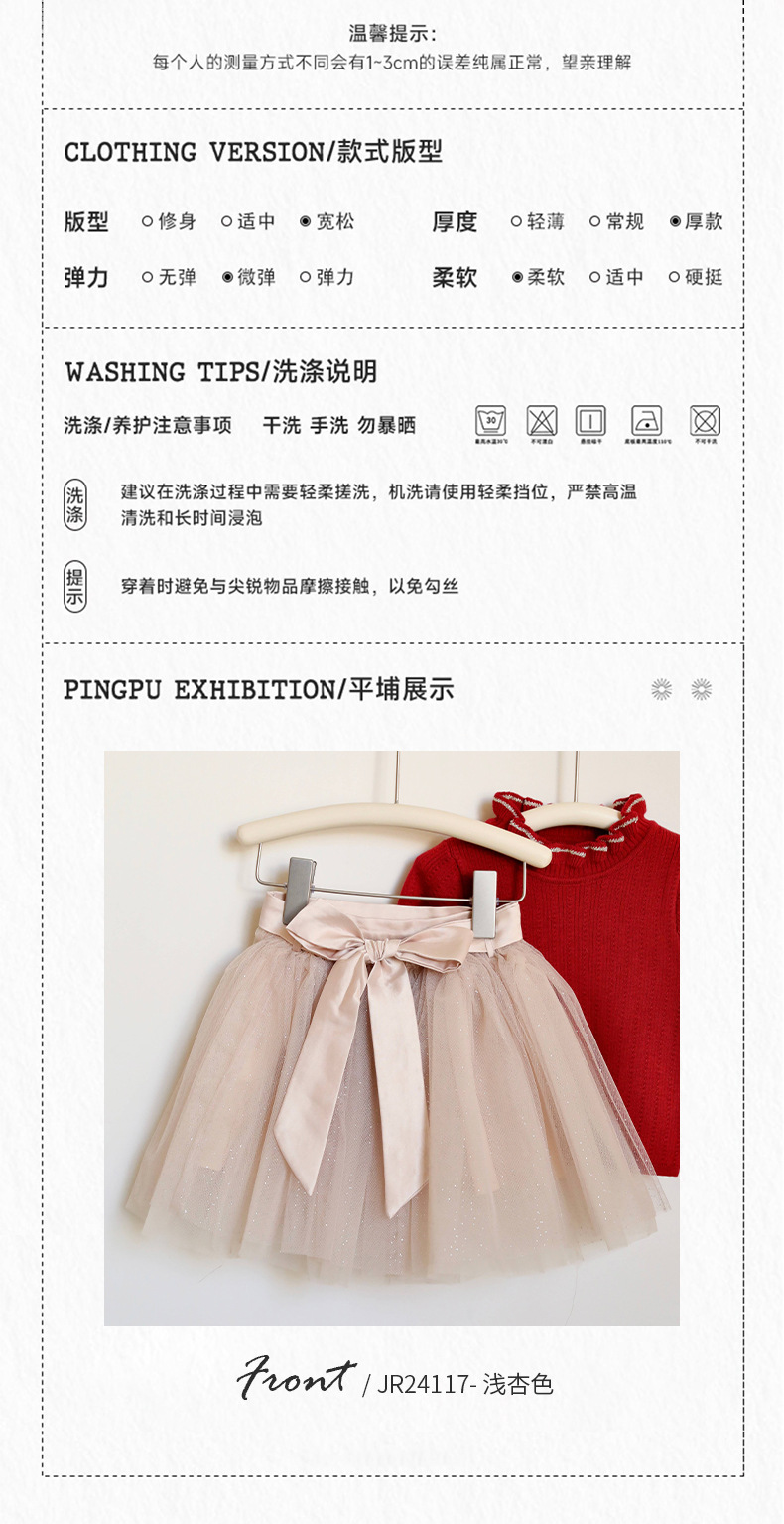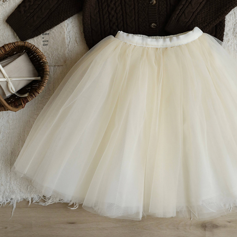 재고 있음 다층 망사 퍼프 스커트 중대형 어린이용 신상 한국 스타일 공주풍 달콤하고 세련된 짧은 치마 연한 살구색