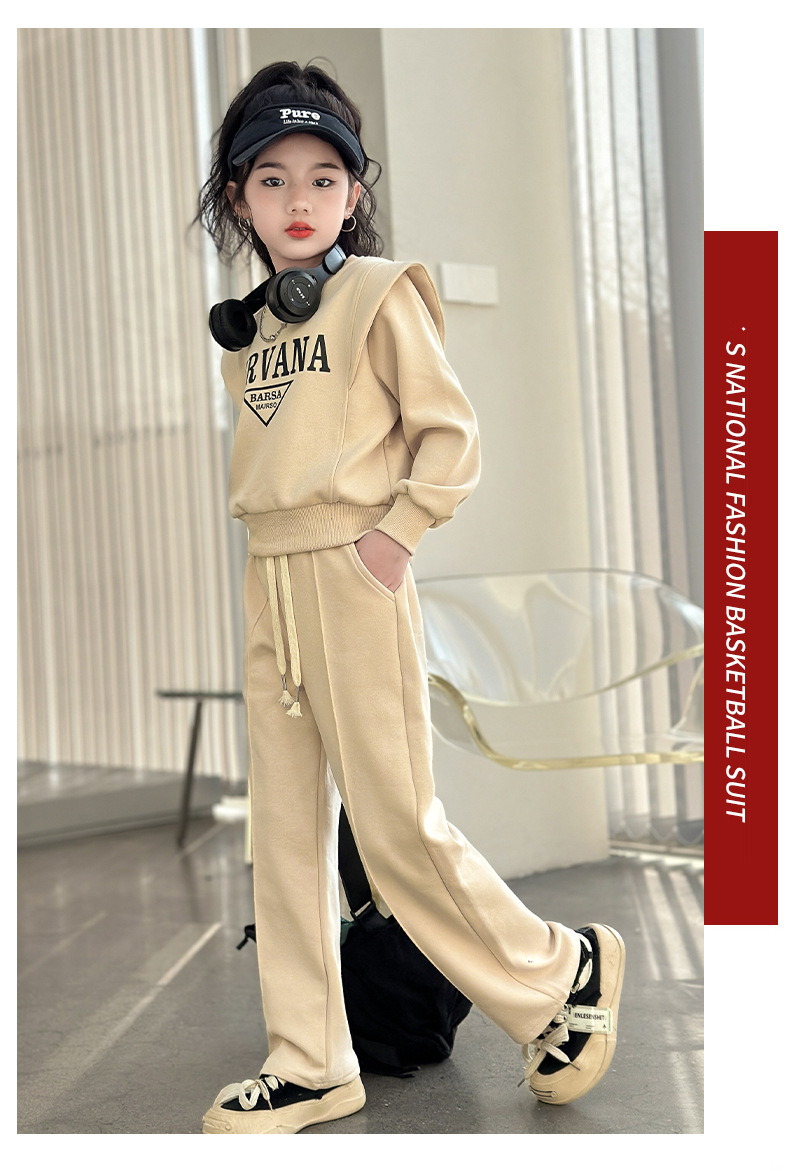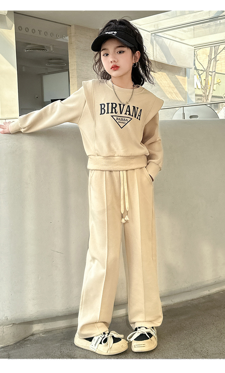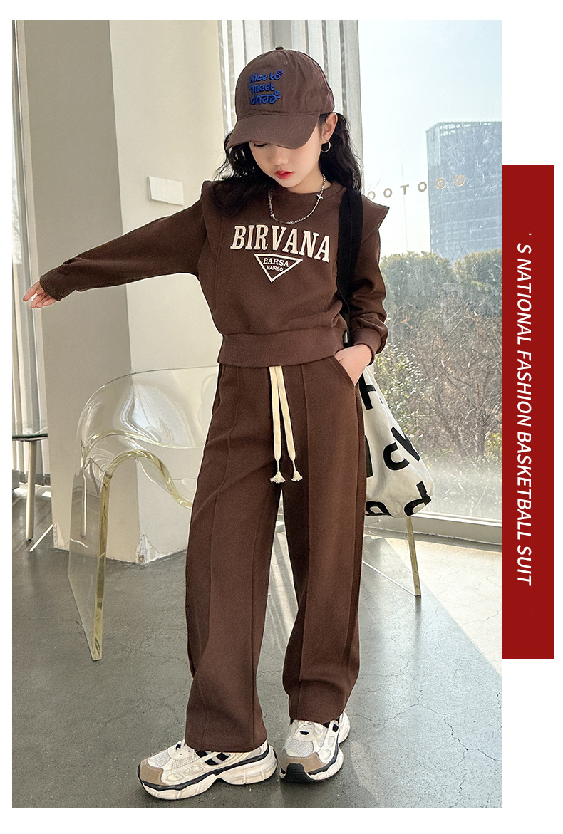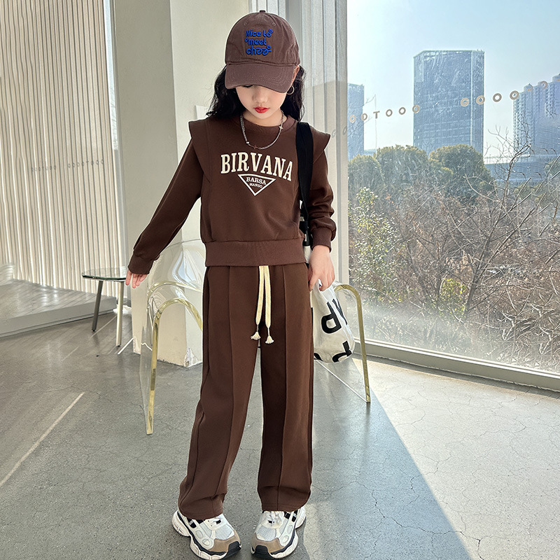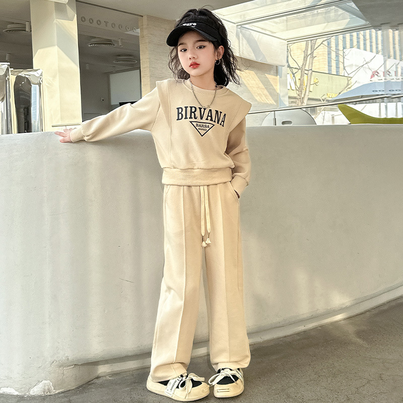 소녀 편지 세트 2025 가을/겨울 새로운 서양식 편지 큰 어린이 스포츠 느슨한 어린이 땀 투피스 세트