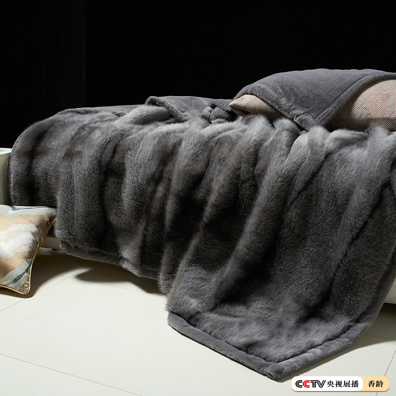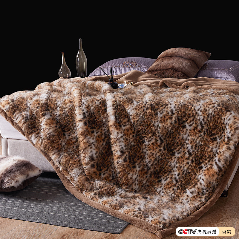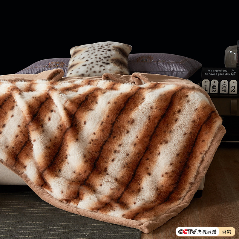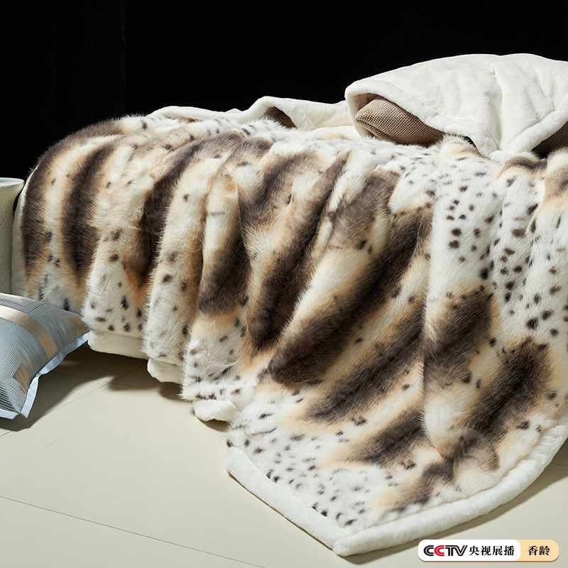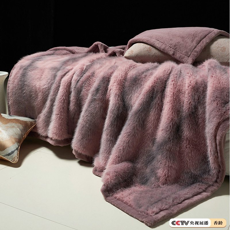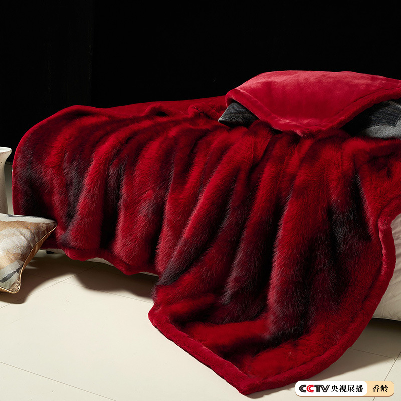 KOU 스노우 폭스 양털 담요 두꺼운 더블 레이어 웨딩 모피 담요 겨울 고급 가짜 폭스 모피 빌라 담요스토어 가기