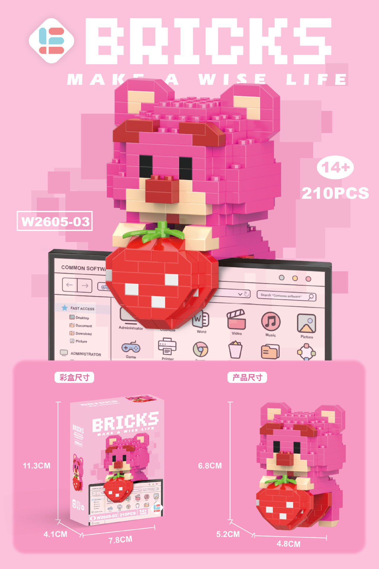 • W2605-51 펜던트 딸기곰 210PCS