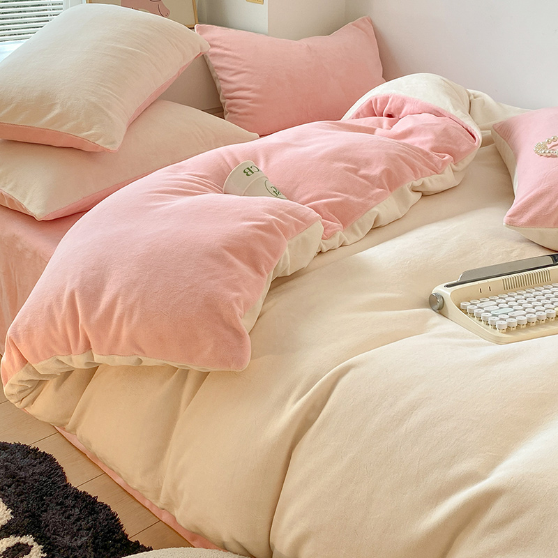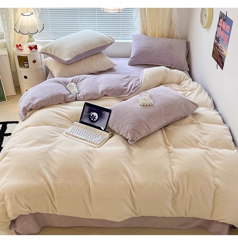 양면 밀크 벨벳 4 피스 세트 두꺼운 겨울 산호 벨벳 침구 기모 따뜻한 플란넬 퀼트 커버 9 벨벳스토어 가기