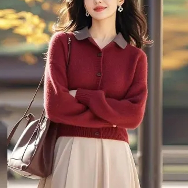 작은 사람들을위한 독특한 슈퍼 잘 생긴 탑 소프트 왁스 디자인 레드 니트 카디건 스웨터 가을과 겨울 여성 의류스토어 가기