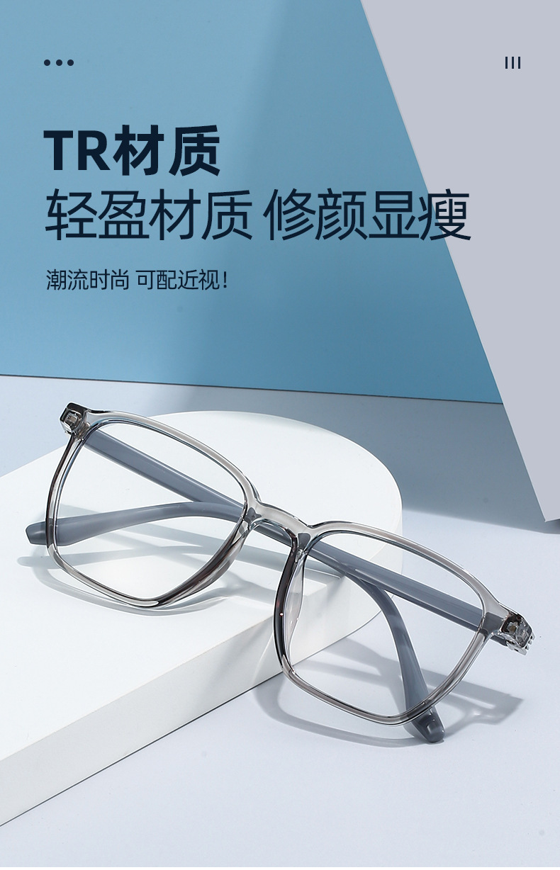 새로운 스타일 쿨 그레이 프레임 안경 여성용 레트로 플레인 화이트 대형 프레임 미러 프레임 작은 안티 블루 라이트 플랫 미러 남성용스토어 가기