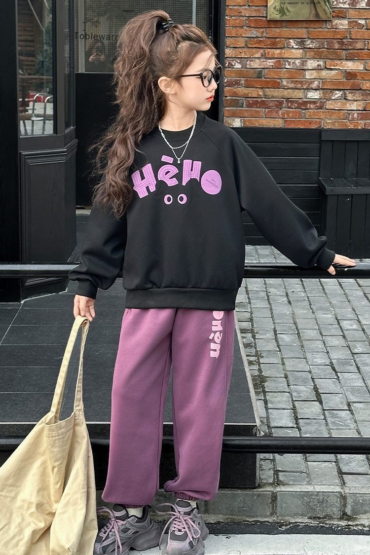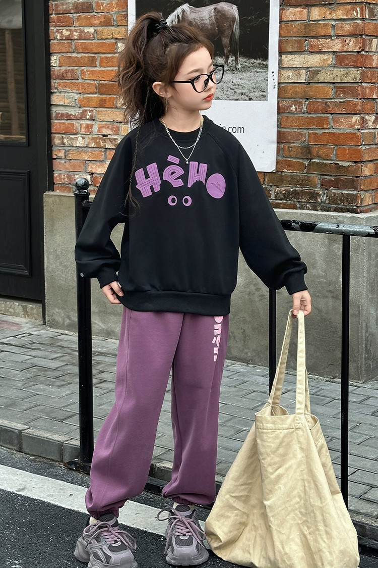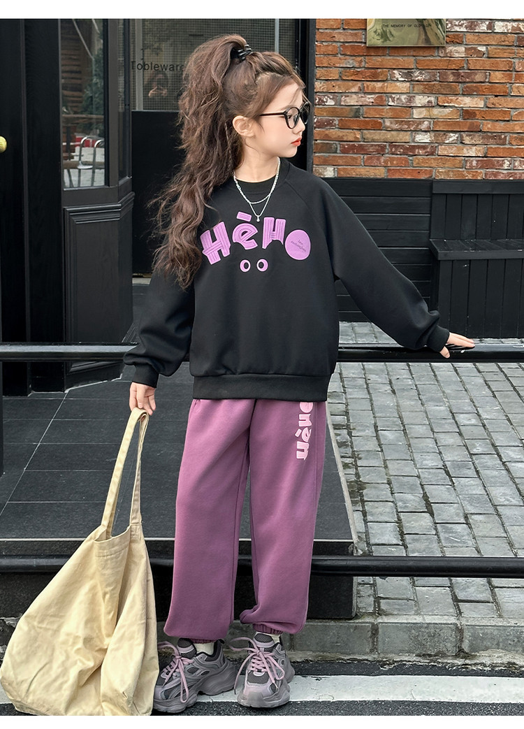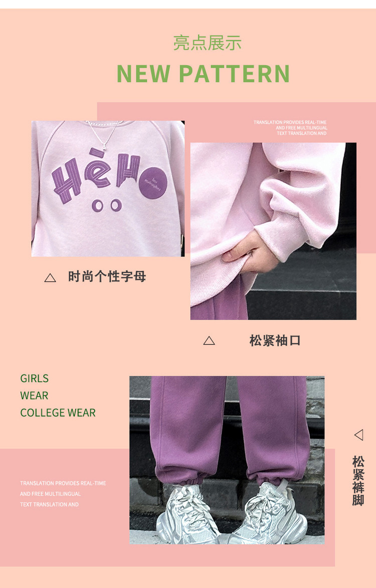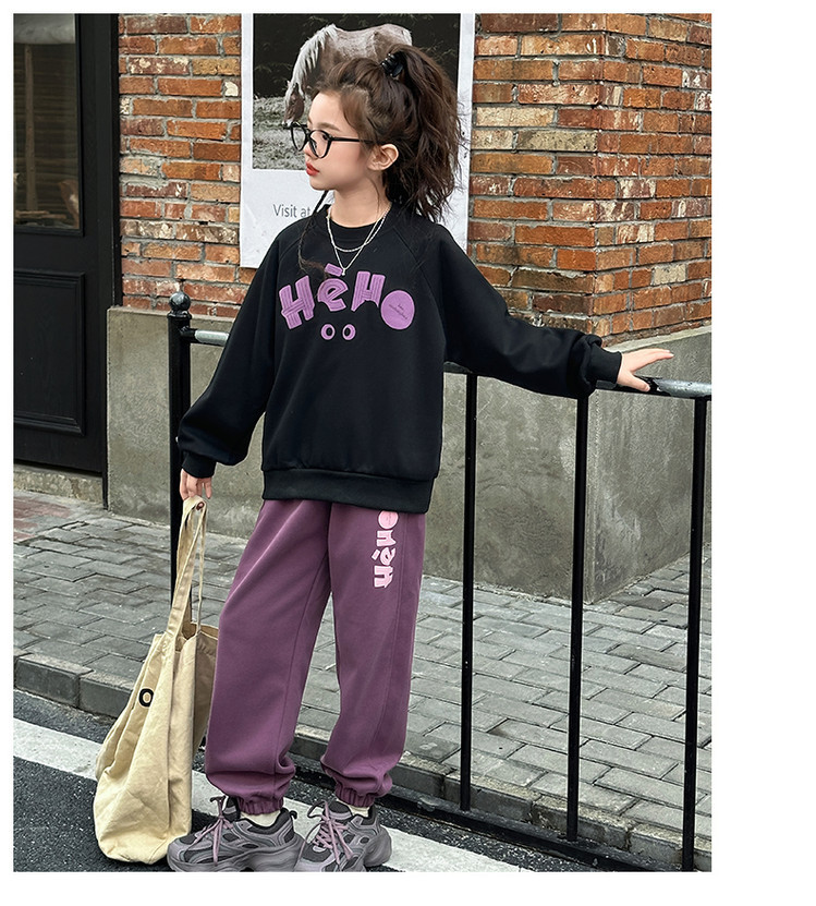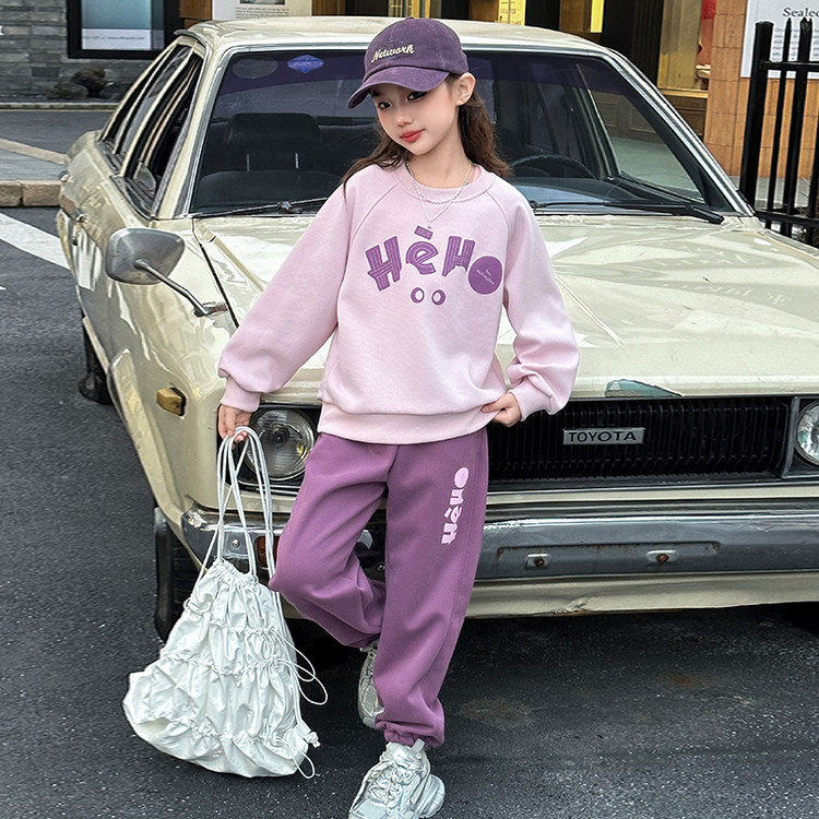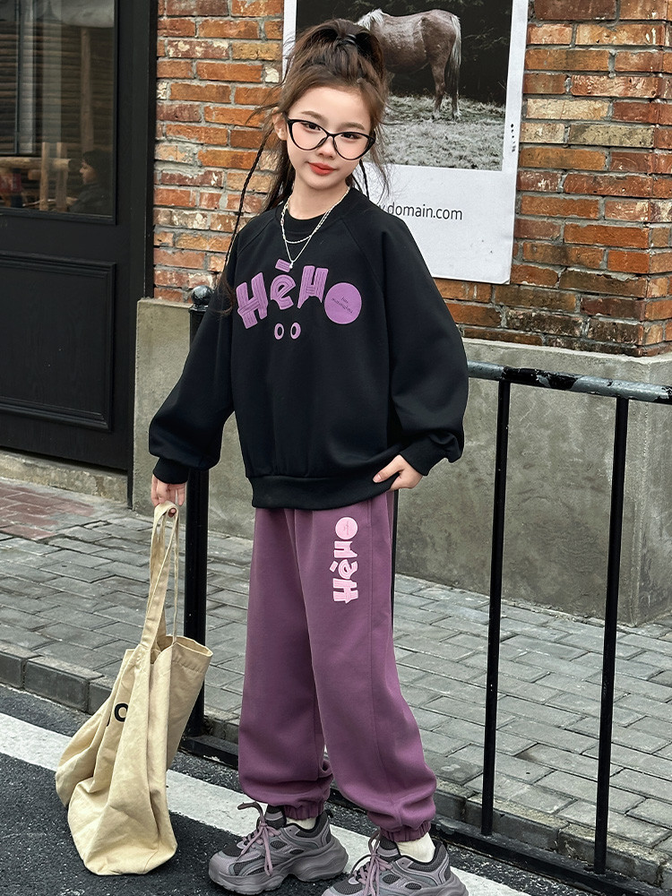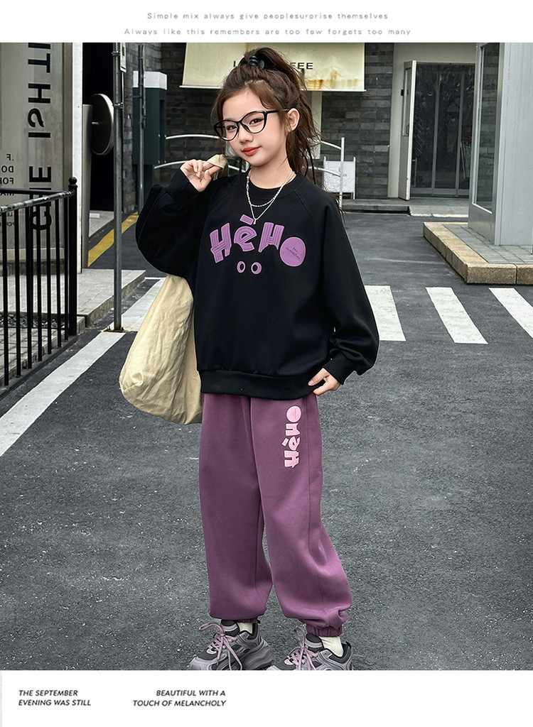 소녀들의 편지 명암 컬러 세트 풀오버 스웨트셔츠 운동복 대형 어린이 봄 · 가을 유행 쿨 루즈 한국 투피스 세트