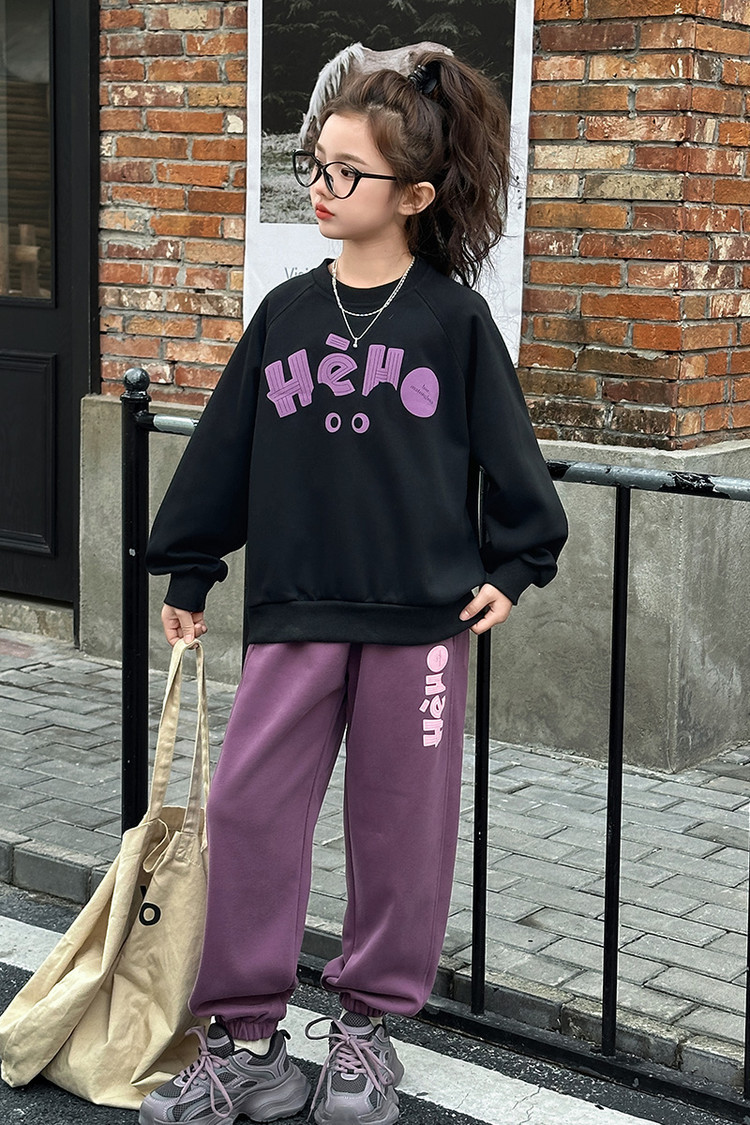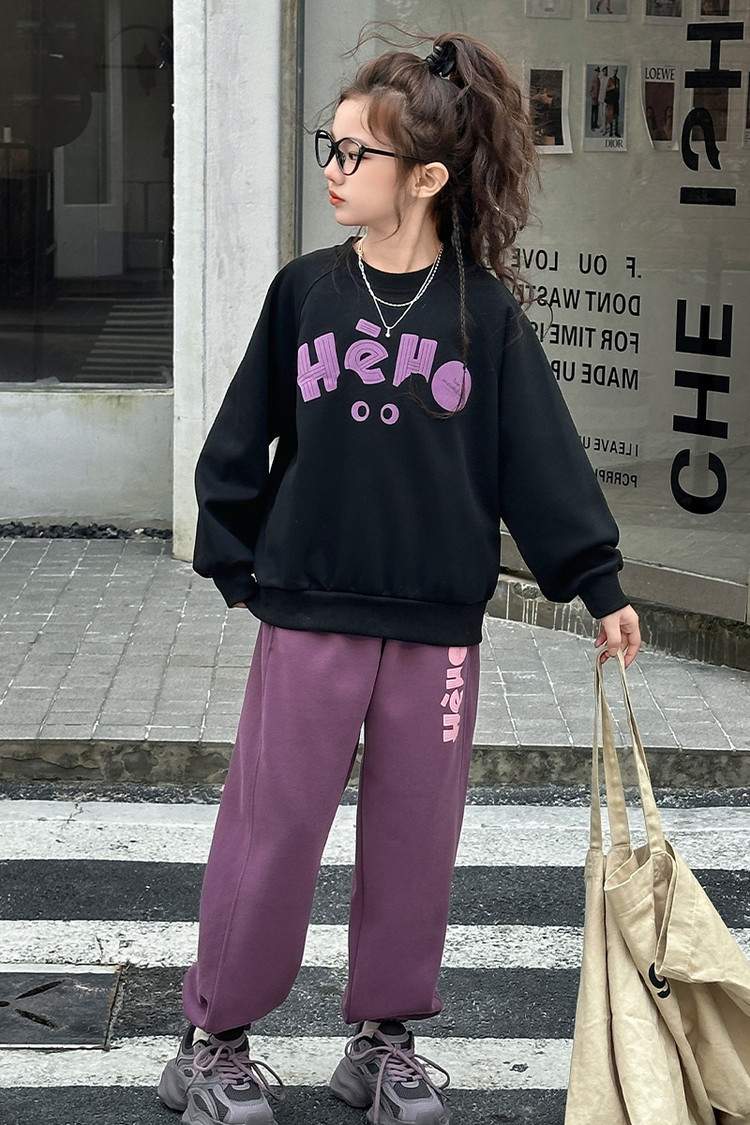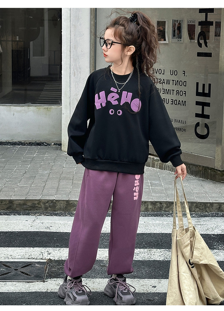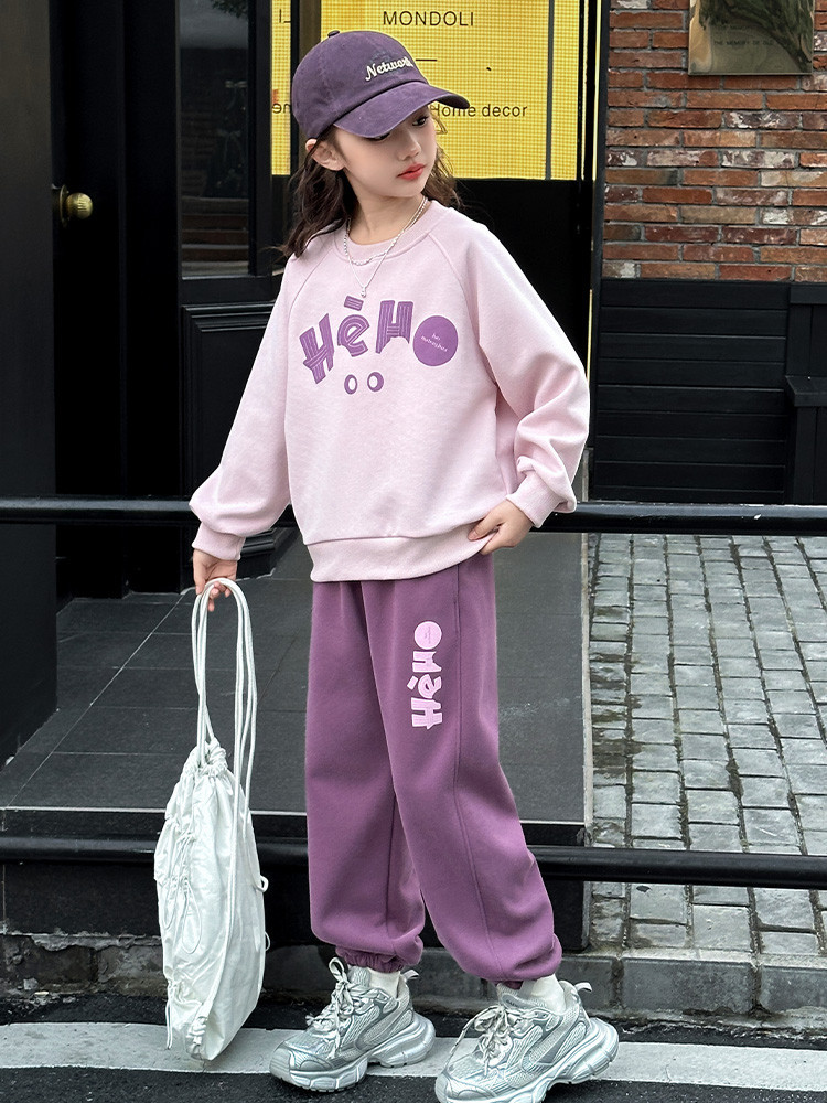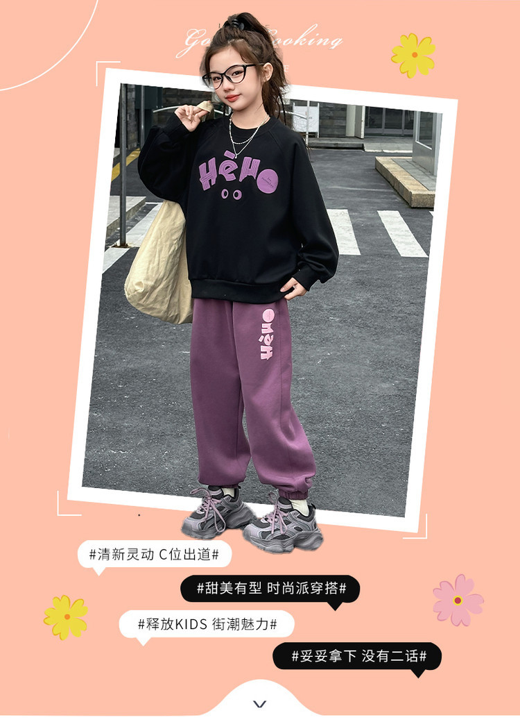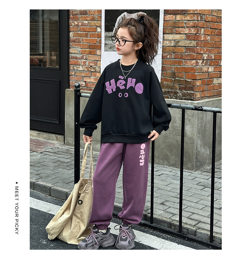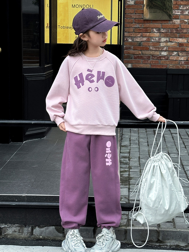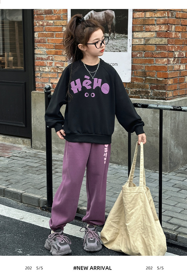 소녀들의 편지 명암 컬러 세트 풀오버 스웨트셔츠 운동복 대형 어린이 봄 · 가을 유행 쿨 루즈 한국 투피스 세트