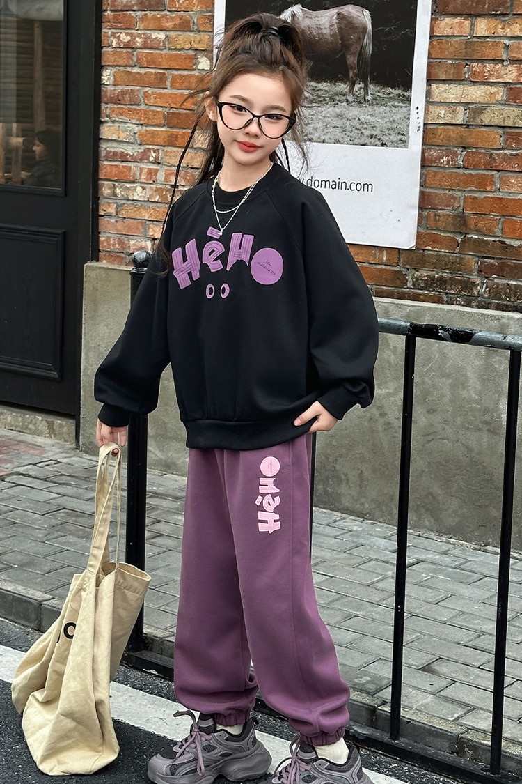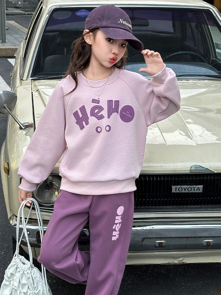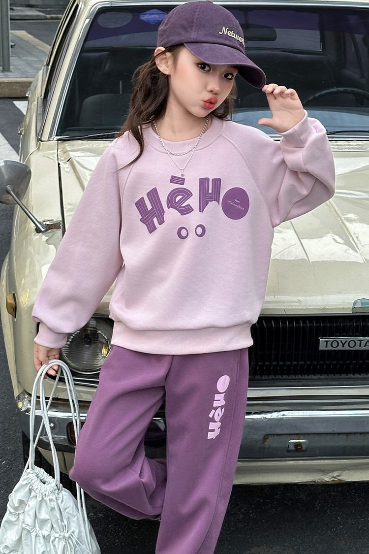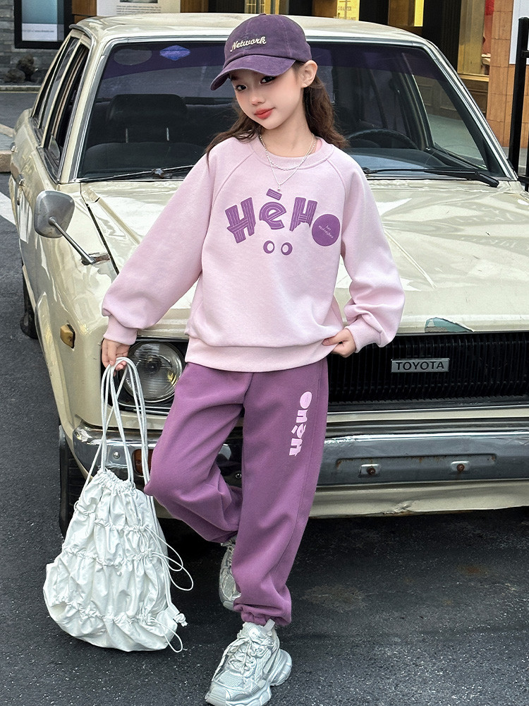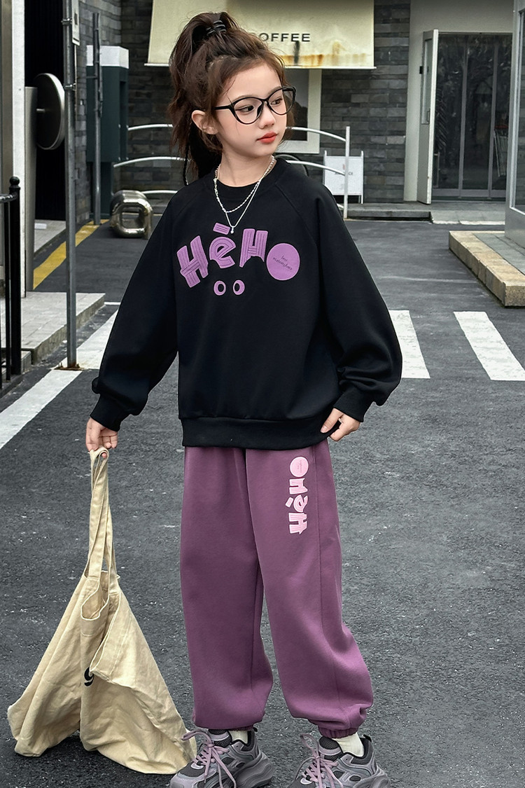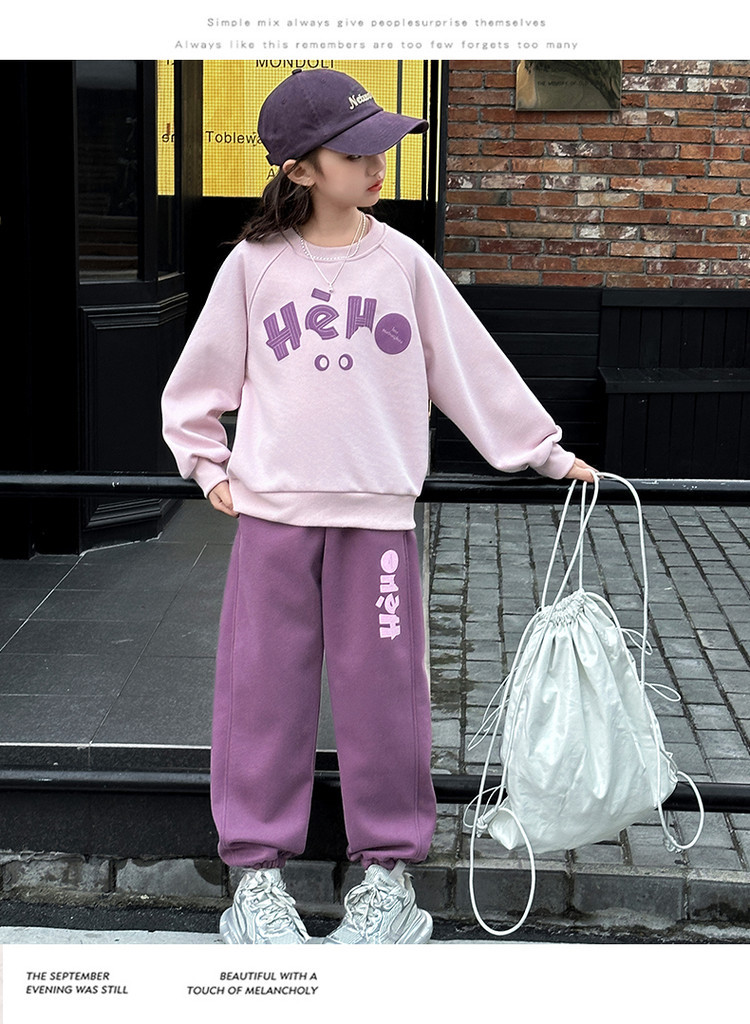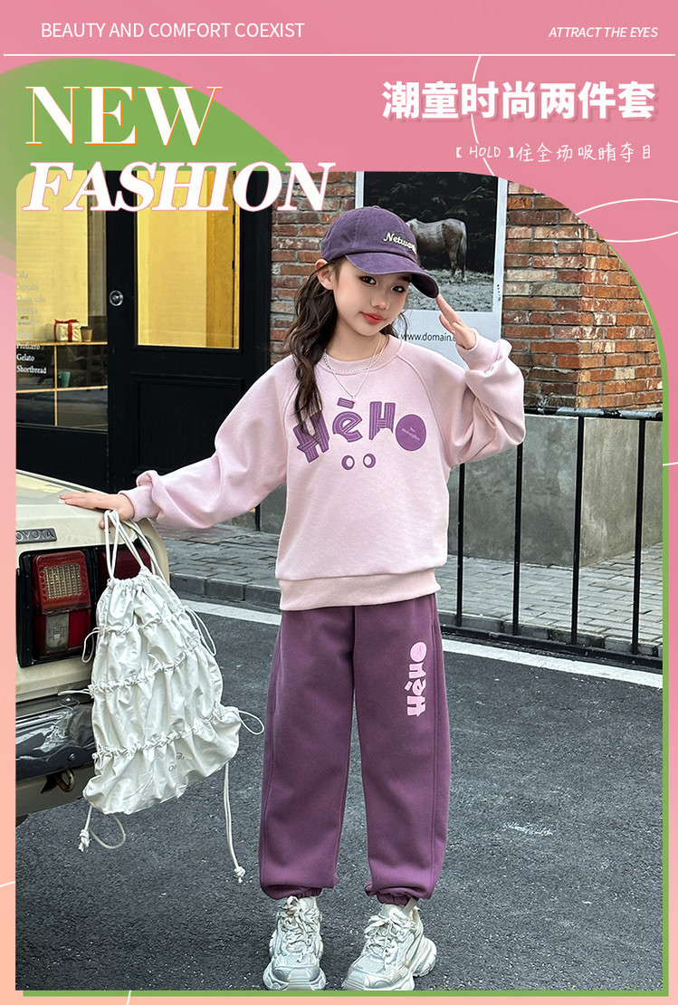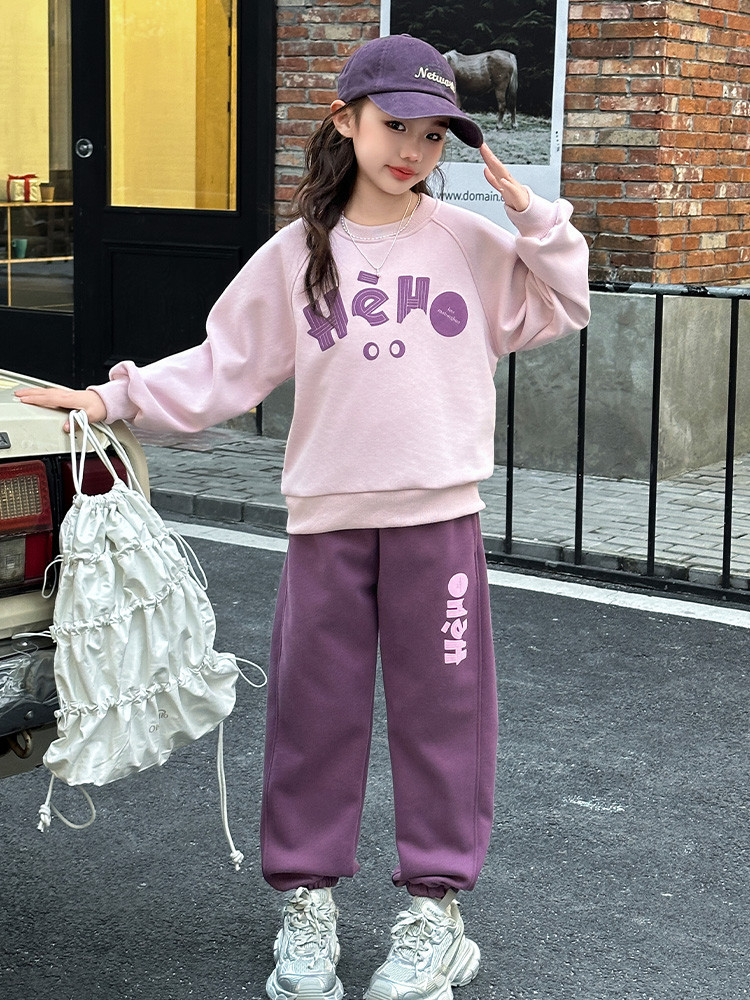 소녀들의 편지 명암 컬러 세트 풀오버 스웨트셔츠 운동복 대형 어린이 봄 · 가을 유행 쿨 루즈 한국 투피스 세트