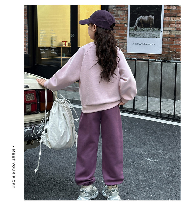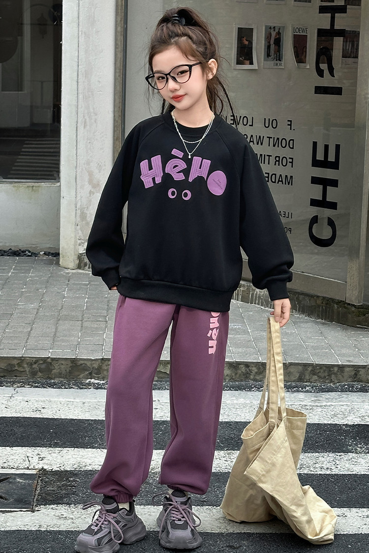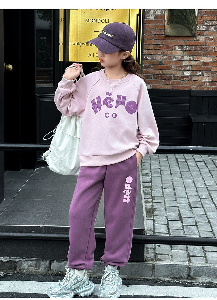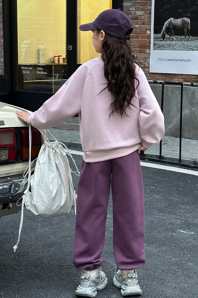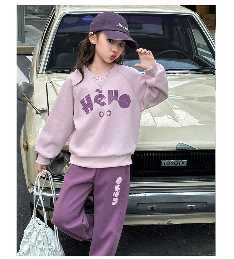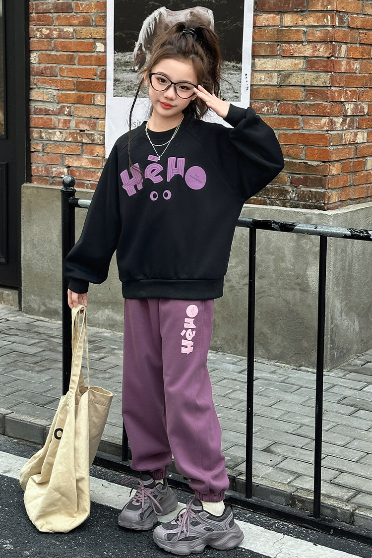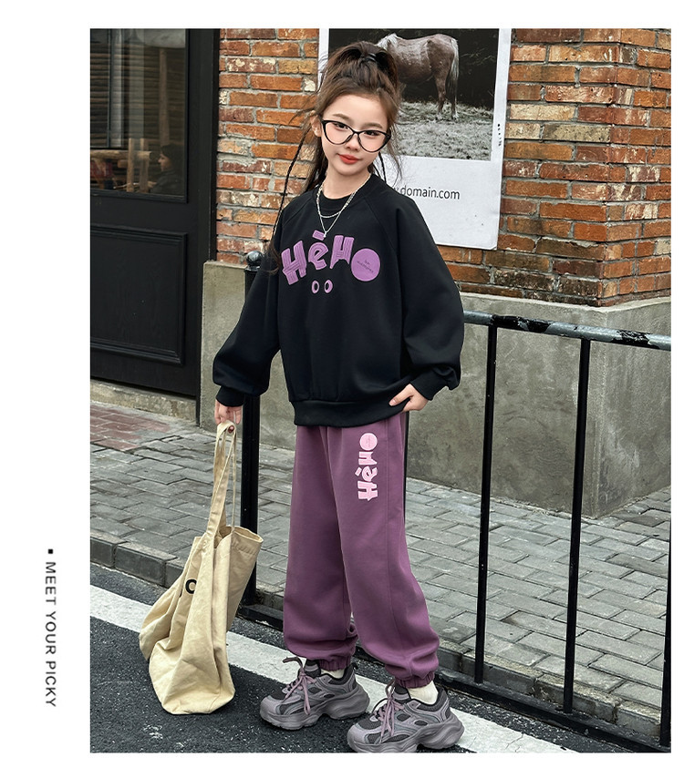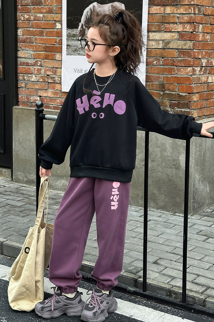 소녀들의 편지 명암 컬러 세트 풀오버 스웨트셔츠 운동복 대형 어린이 봄 · 가을 유행 쿨 루즈 한국 투피스 세트