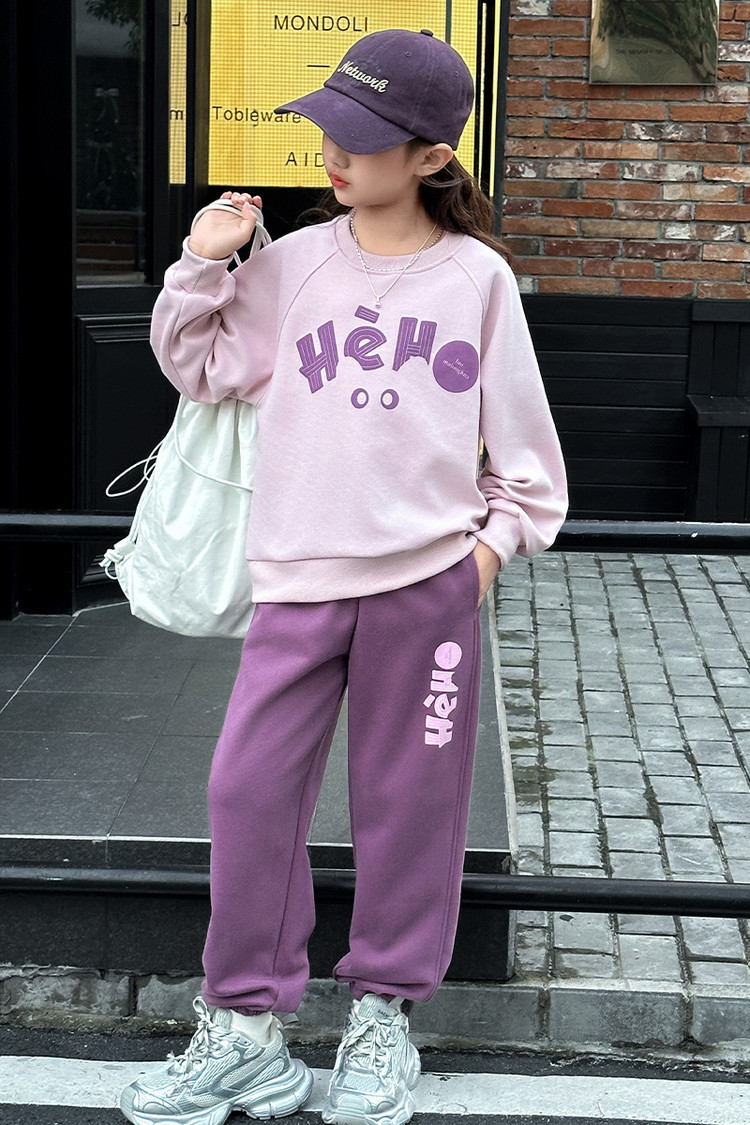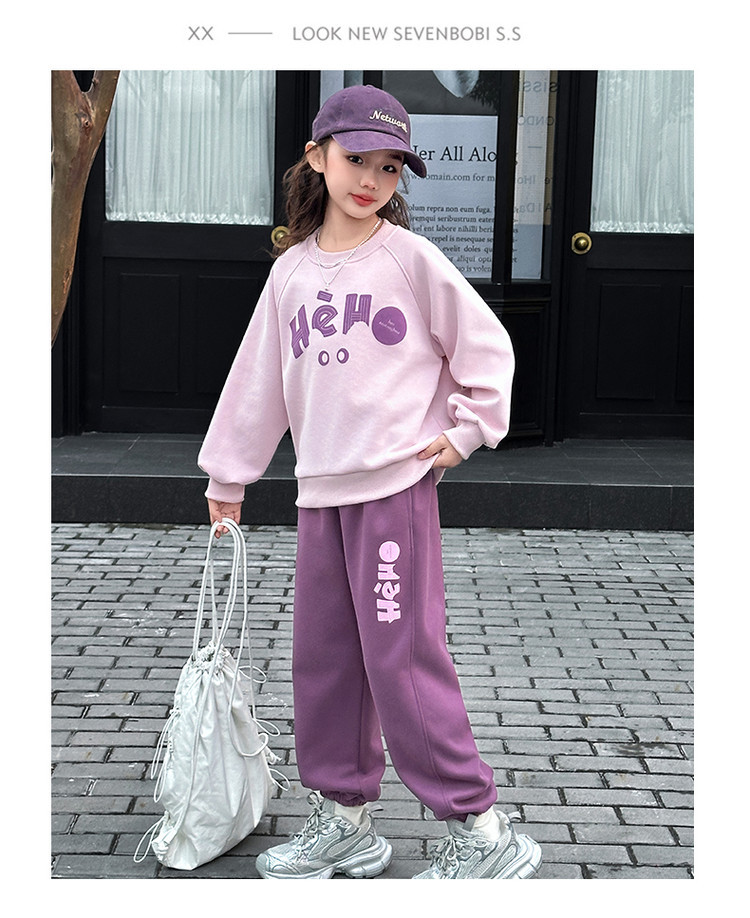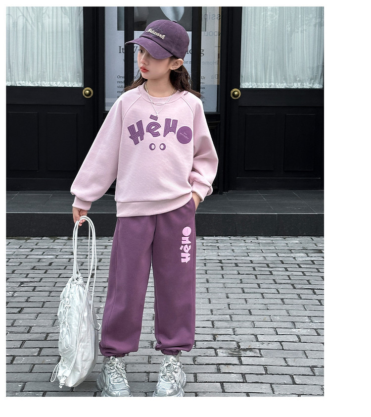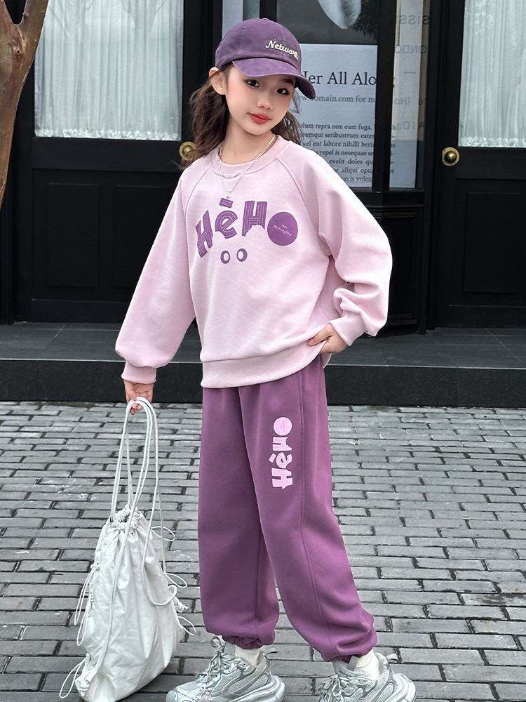 소녀들의 편지 명암 컬러 세트 풀오버 스웨트셔츠 운동복 대형 어린이 봄 · 가을 유행 쿨 루즈 한국 투피스 세트스토어 가기