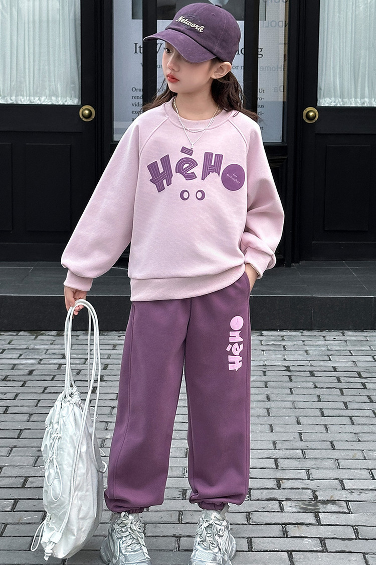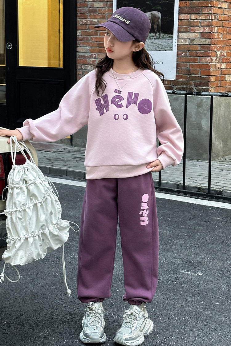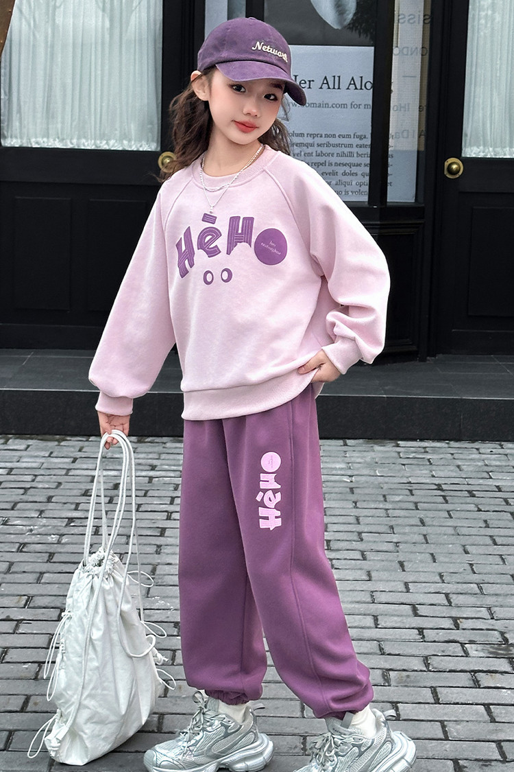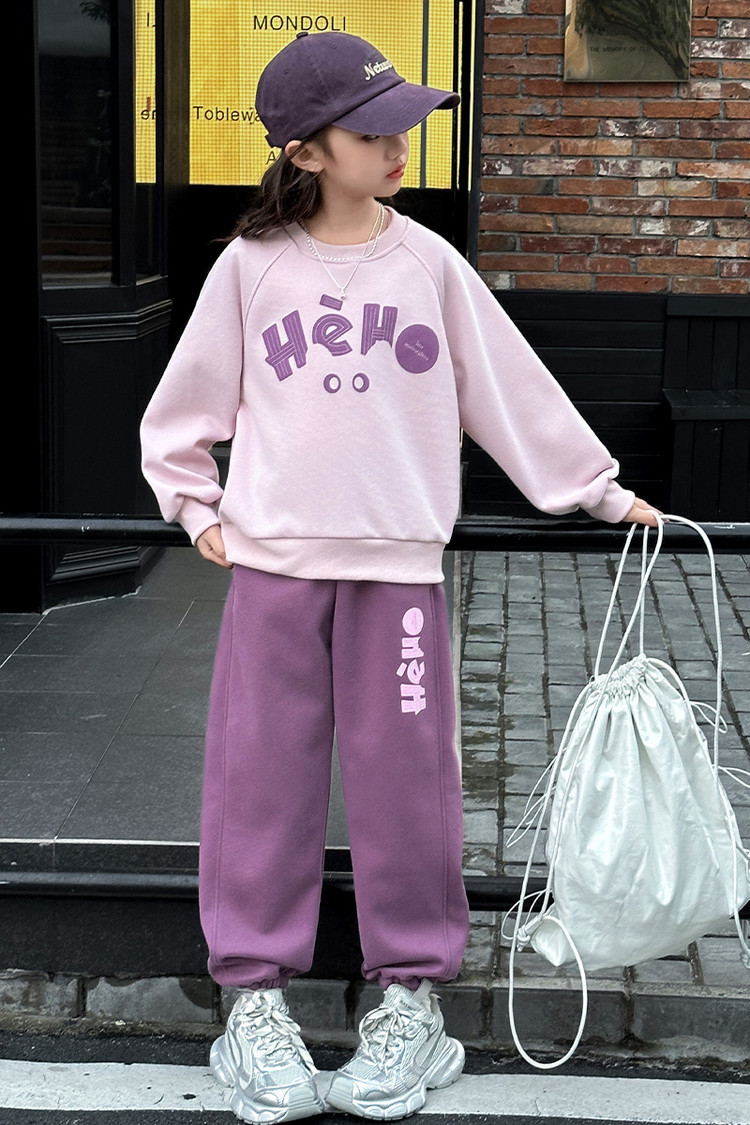 소녀들의 편지 명암 컬러 세트 풀오버 스웨트셔츠 운동복 대형 어린이 봄 · 가을 유행 쿨 루즈 한국 투피스 세트스토어 가기