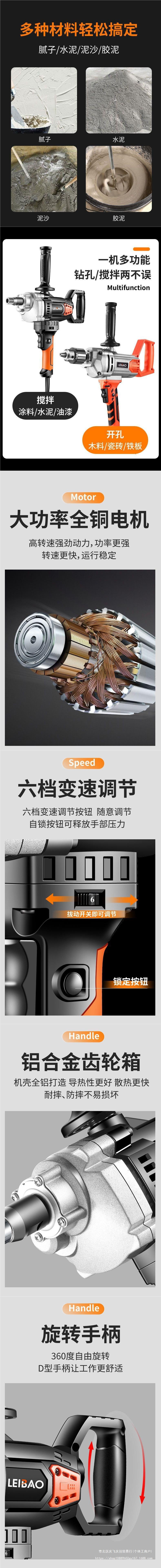 • 3680W 정방향 및 역방향 + 믹싱로드 + 드릴 비트 세트