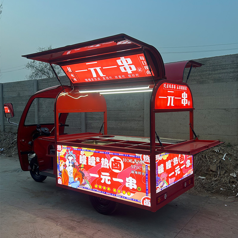 다기능 자동차 아침 식사 카트 바베큐 노점 이동 야간 시장 전기 세발자전거 노점 스낵 카트 선반