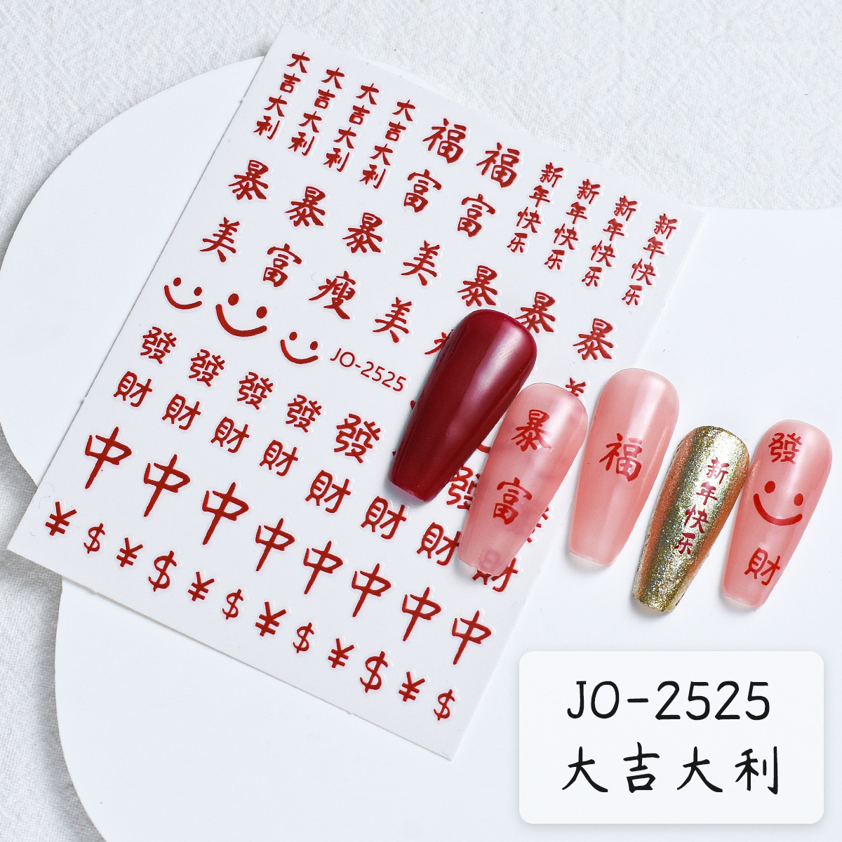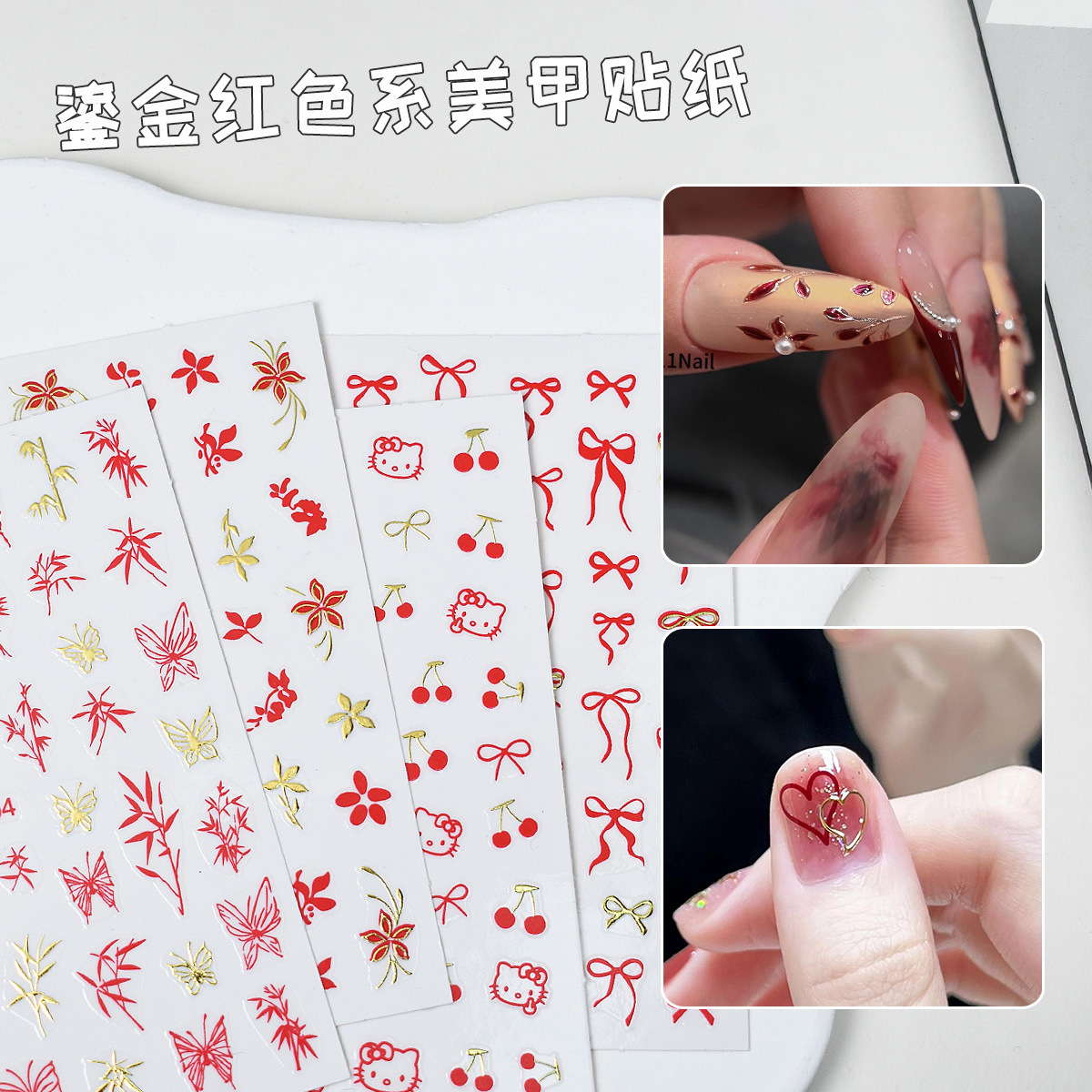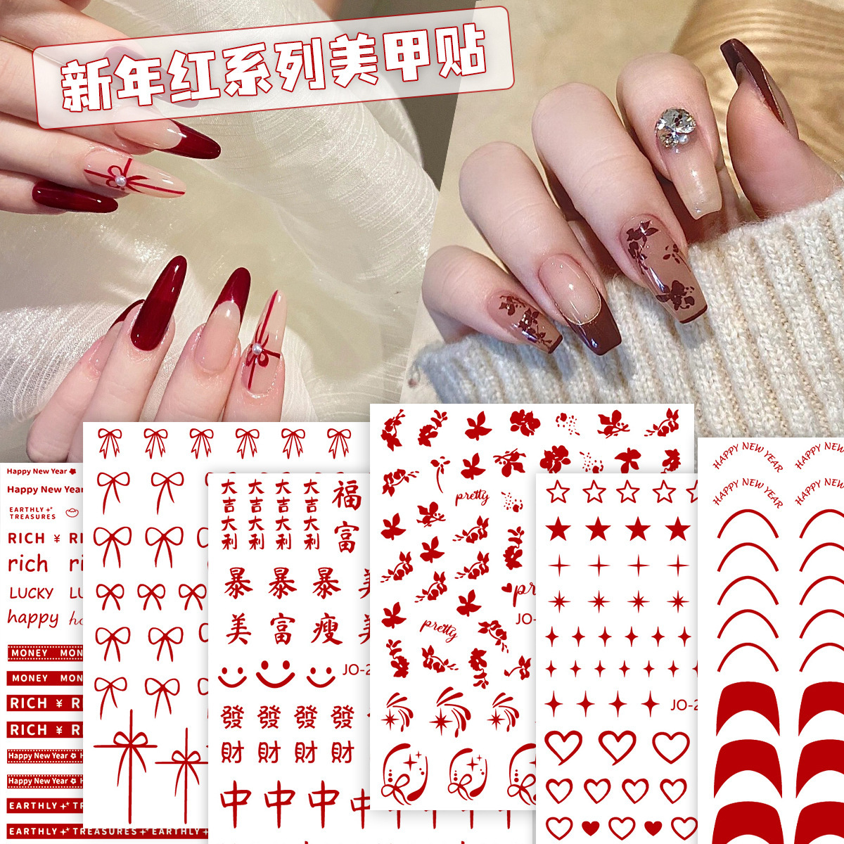 새해 빨간 네일 아트 스티커 간단한 모든 경기 봄 축제 축제 리본 활 만화 고양이 네일 쥬얼리스토어 가기