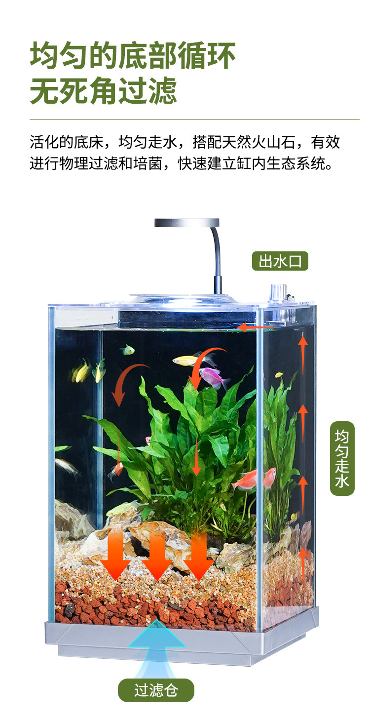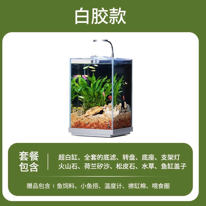 데스크탑 바닥 필터 수조, 조경 수조 전체 세트, 자체 순환 필터 수조, 사무실 홈 초백색 유리 수조