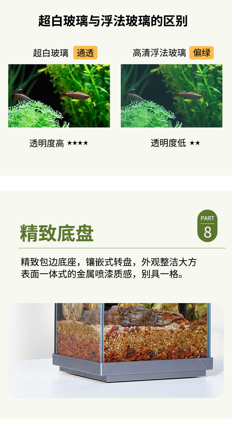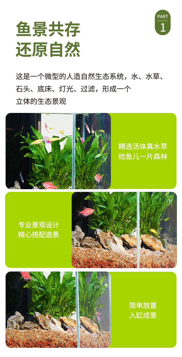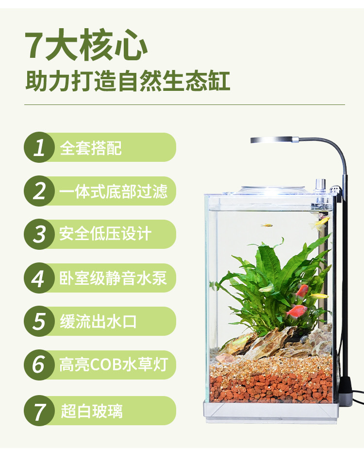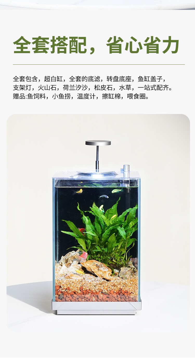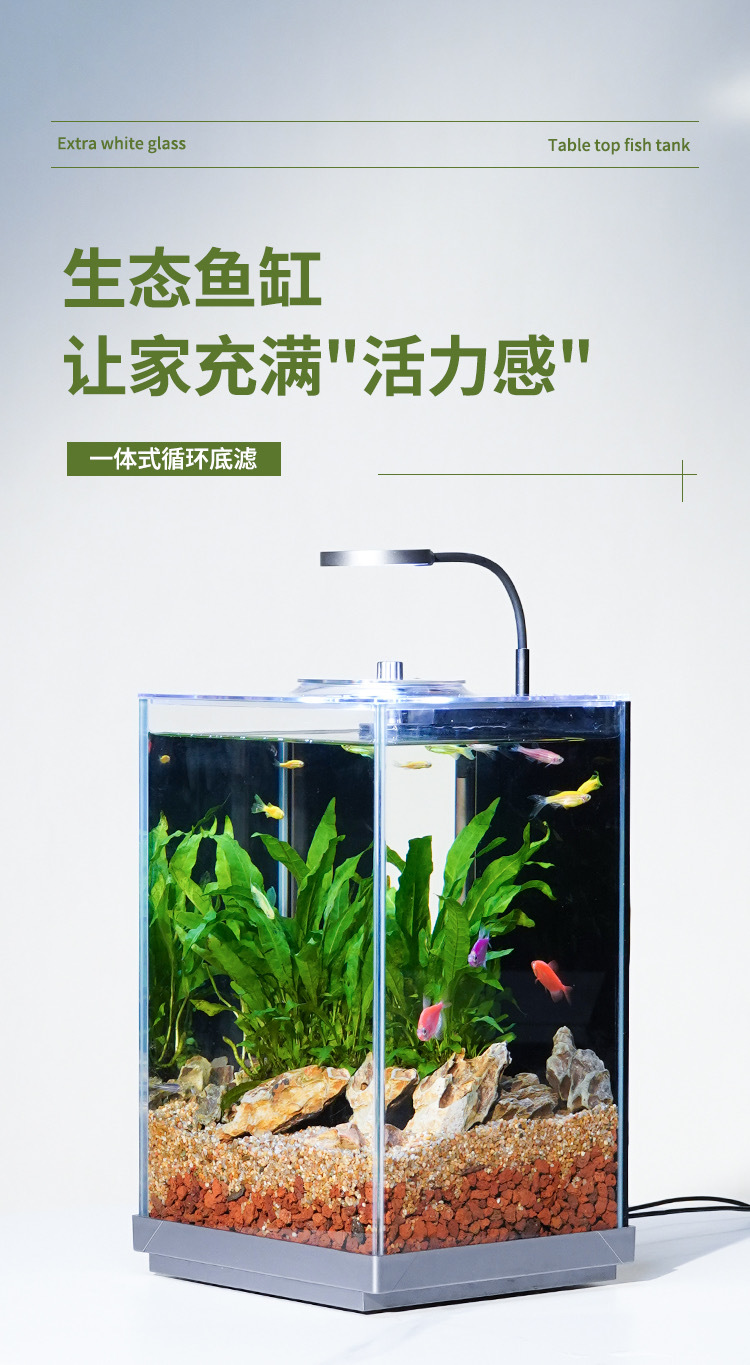 데스크탑 바닥 필터 수조, 조경 수조 전체 세트, 자체 순환 필터 수조, 사무실 홈 초백색 유리 수조스토어 가기