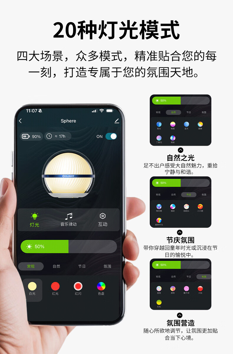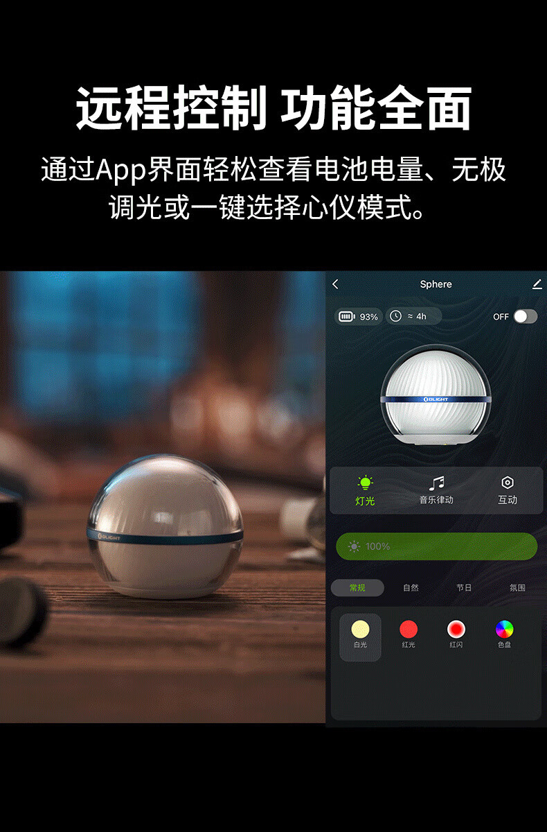 OLIGHT [신규] OLIGHT 눈 보호 야간 조명 Sphere APP 지능형 캠핑 분위기 볼라이트스토어 가기