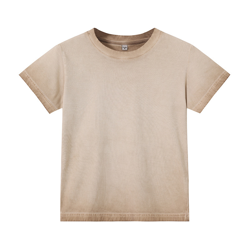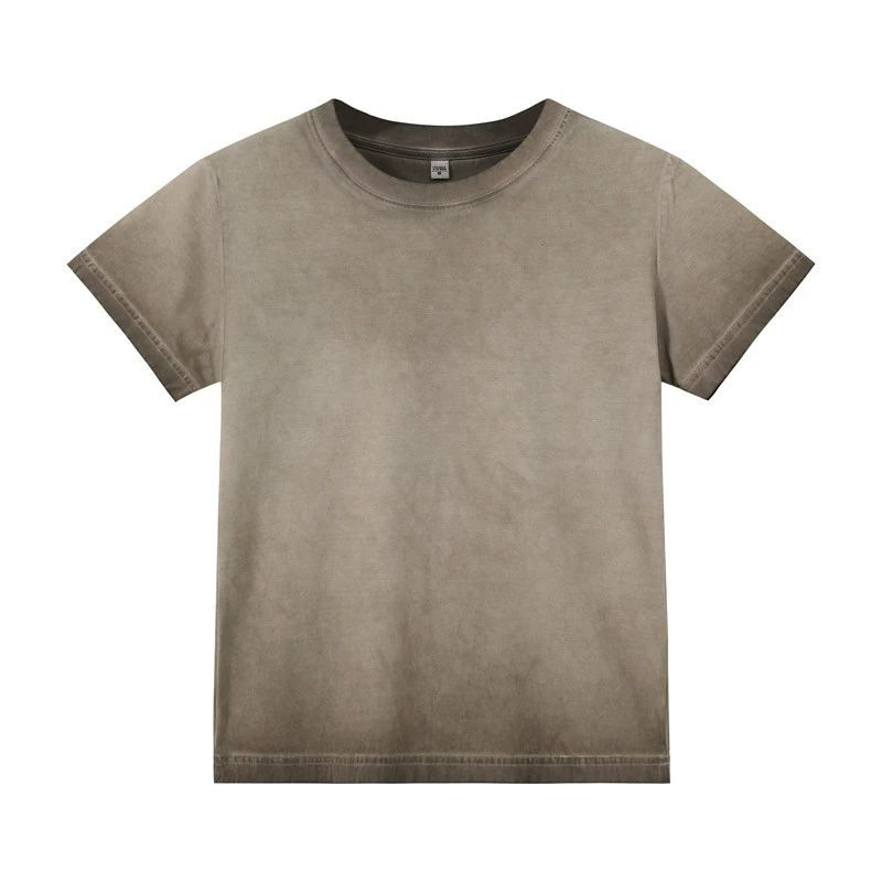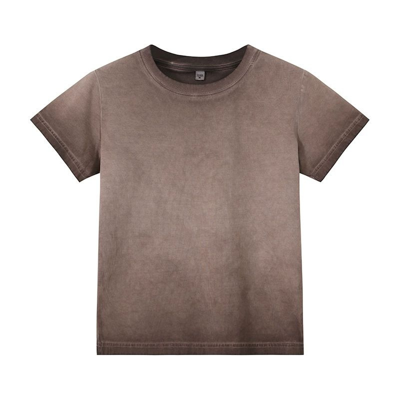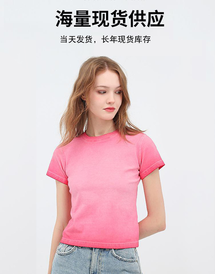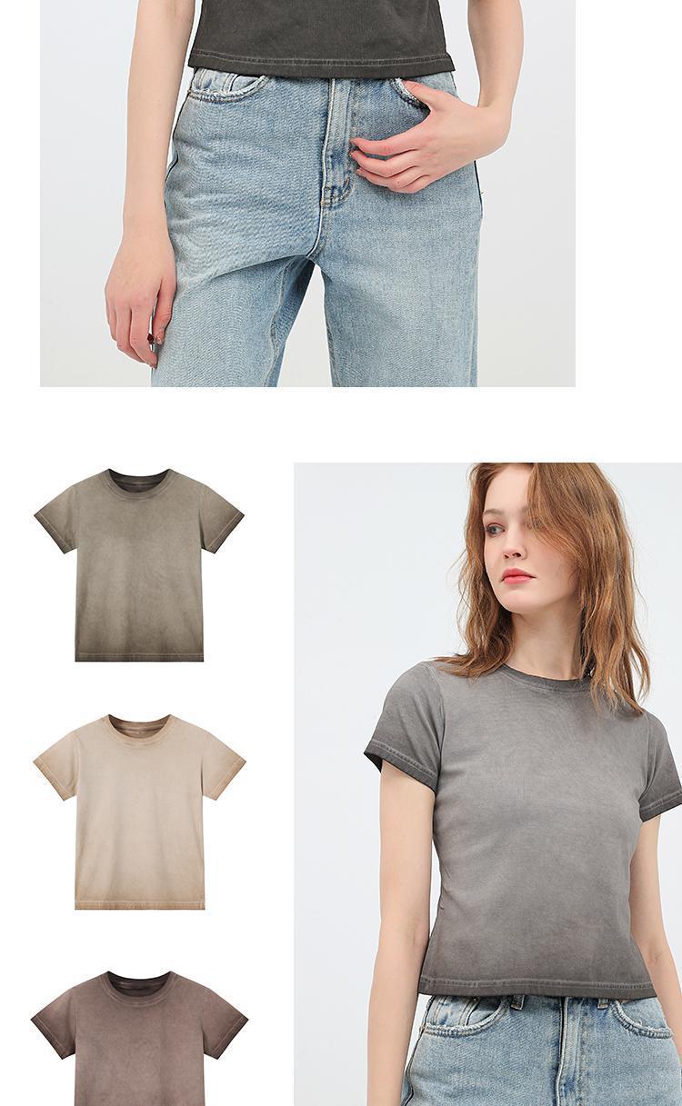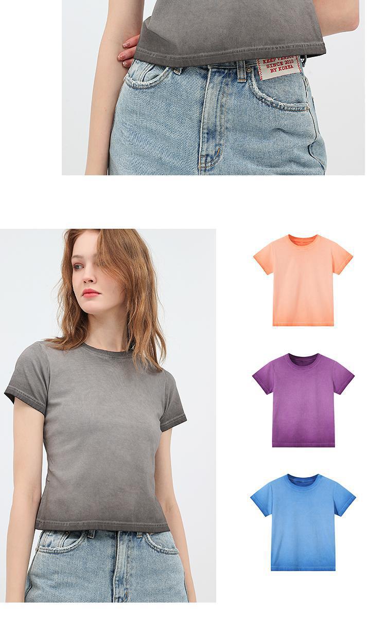 240g 레트로 여성용 투톤 그라데이션 순면 티셔츠 배꼽 노출 슬림핏 섹시한 라운드넥 반팔 여성 티셔츠스토어 가기