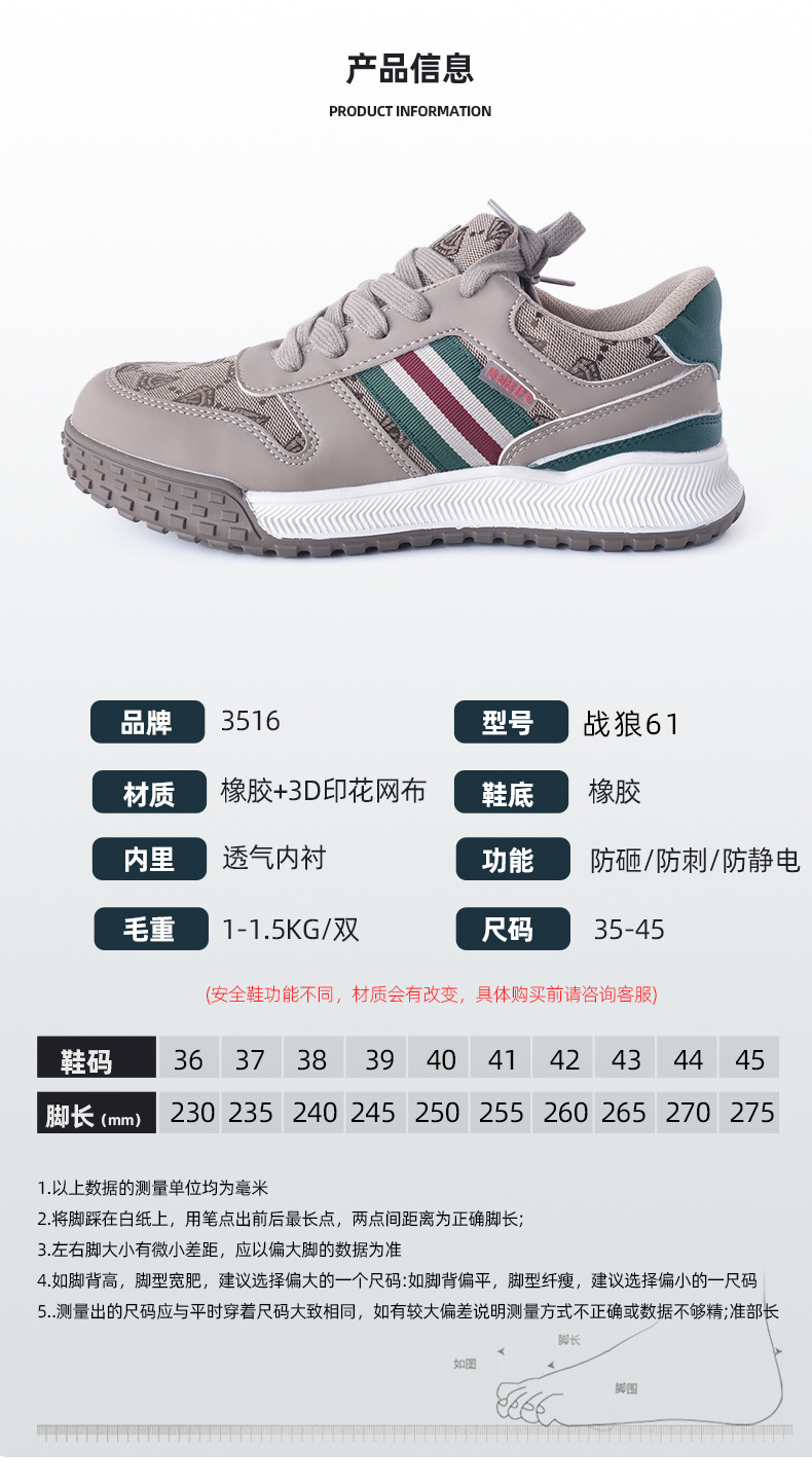 Wolf Warriors 61 노동 안전 신발 남성 및 여성의 안티 스매싱 및 안티 피어싱 사계절 안전 통기성 스틸 헤드 안전 신발 현장 운영스토어 가기