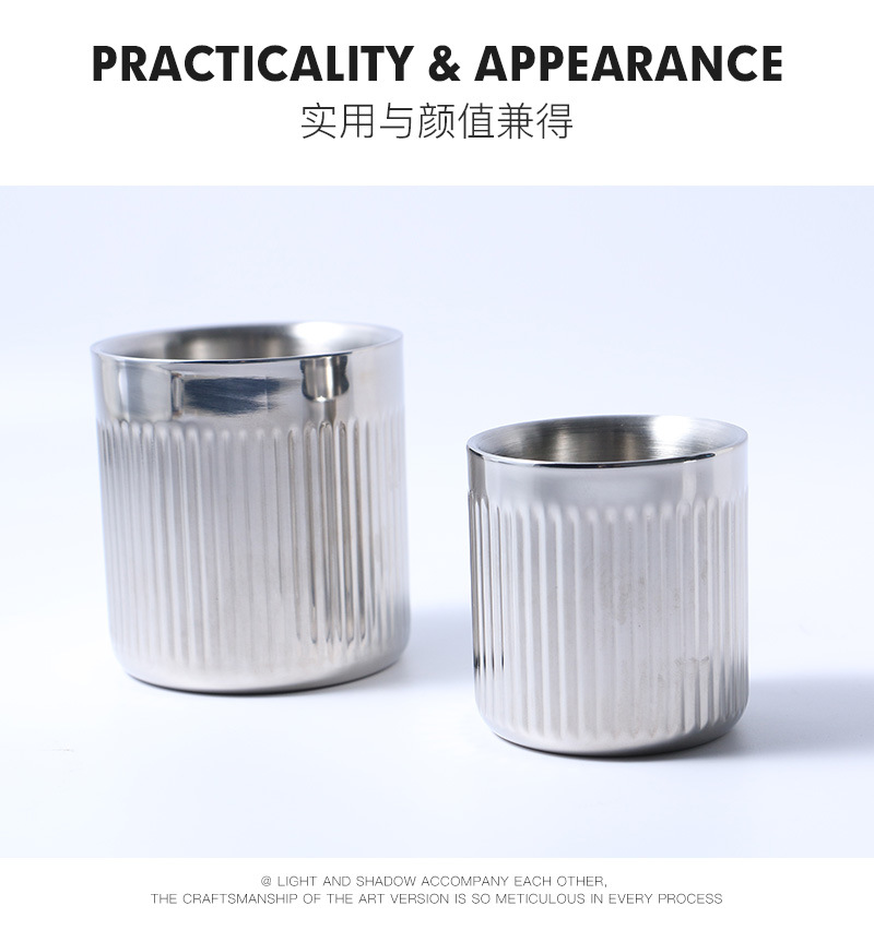 수출 품질 304 스테인리스 스트라이프 맥주컵 이중 단열컵 캠핑 피크닉 냉음료컵 레스토랑 물컵