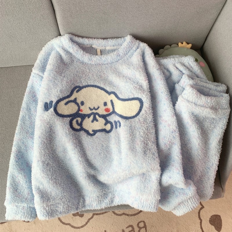 겨울 잠옷 여자 반쪽 벨벳 두껍게 기모 산호 벨벳 일본 스타일 귀여운 만화 겨울 홈 옷 투피스 세트스토어 가기