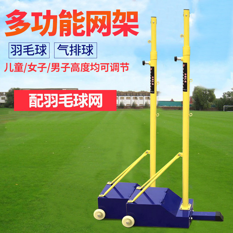 표준 배드민턴 그물 포스트 야외 다기능 휴대용 모바일 리프팅 배구 그물 랙 에어 배구 그물 랙