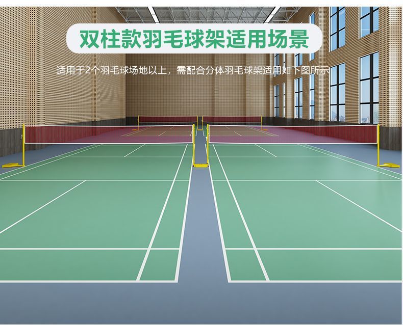 • 이중 기둥 단단한 주철 배드민턴 네트 프레임에는 6.1m 네트가 함께 제공됩니다.