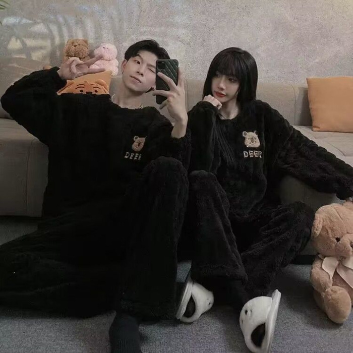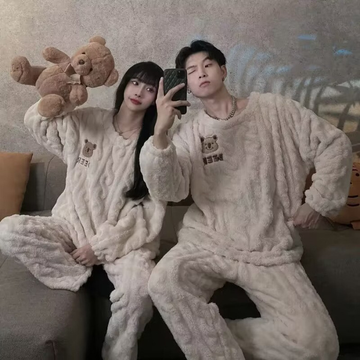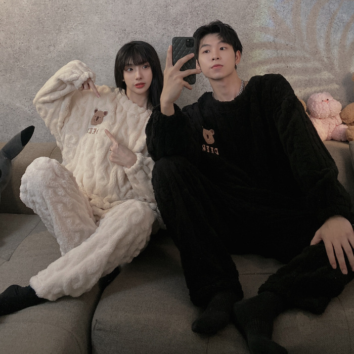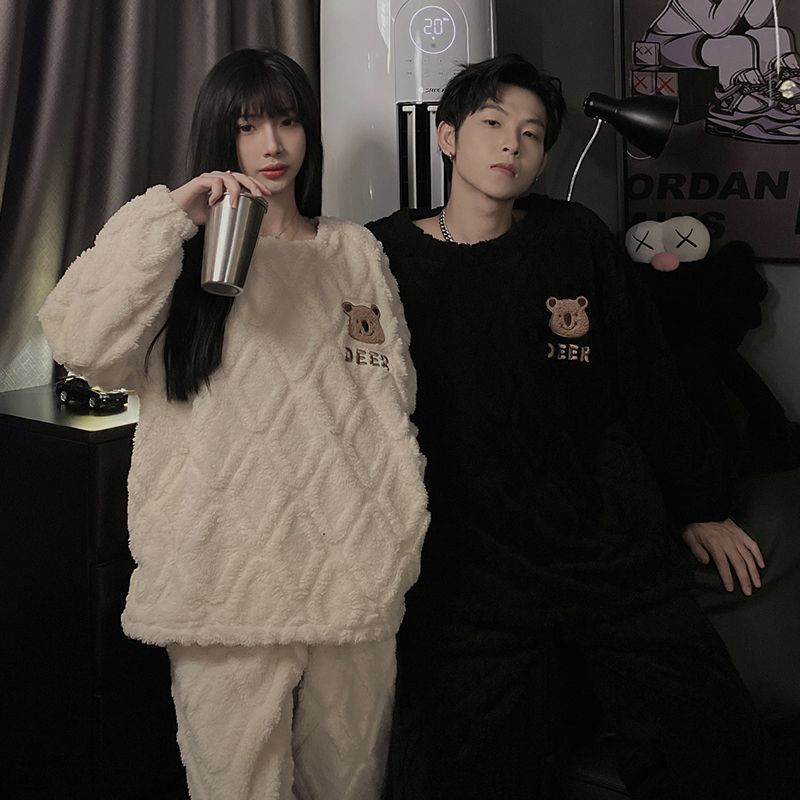 커플 가을 겨울 폭발 기모 두꺼운 플란넬 산호 양털 파자마 여성 양털 남성 홈 의류 세트 잘라스토어 가기