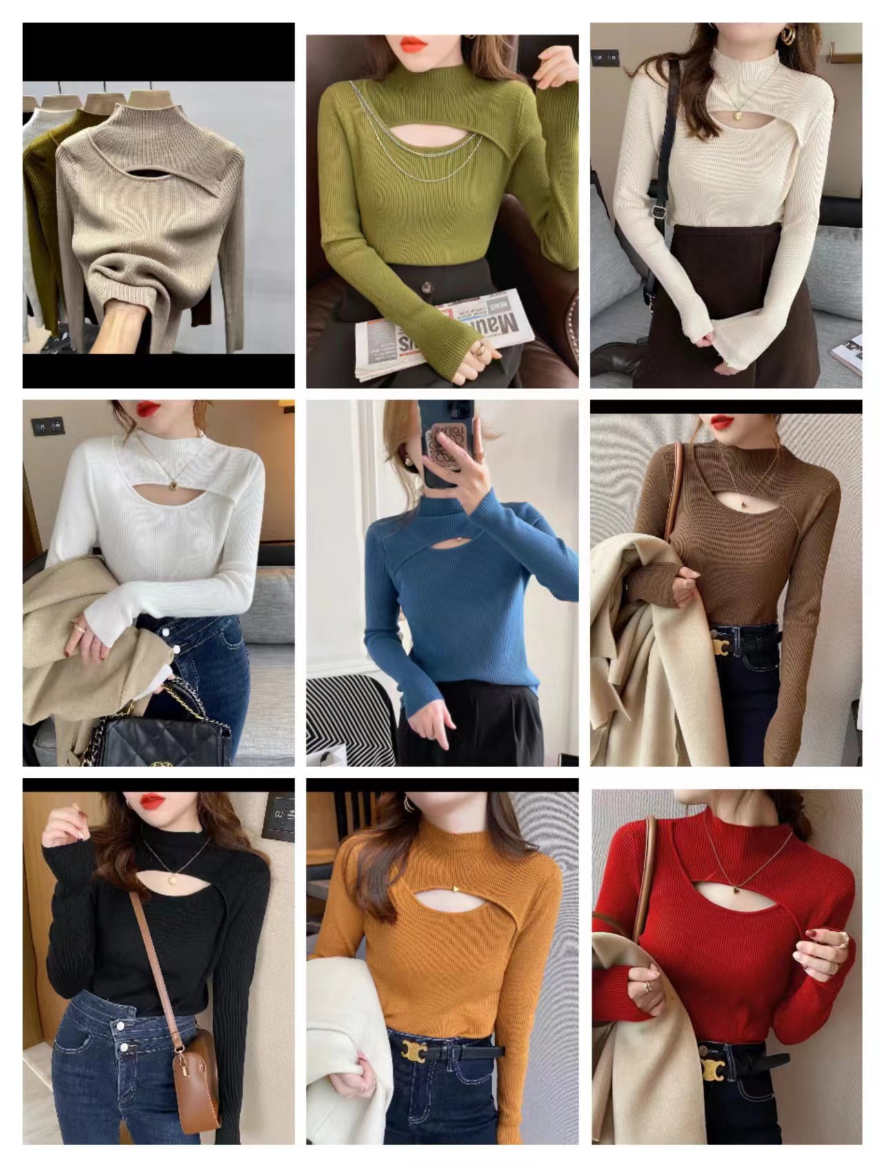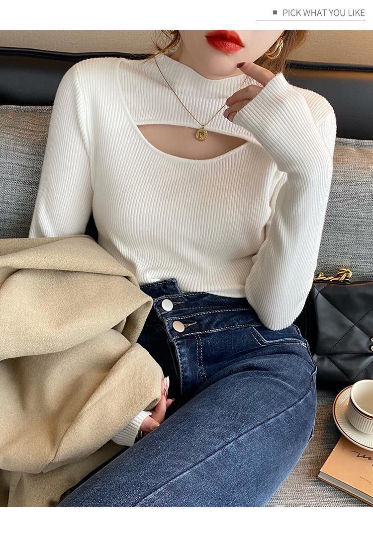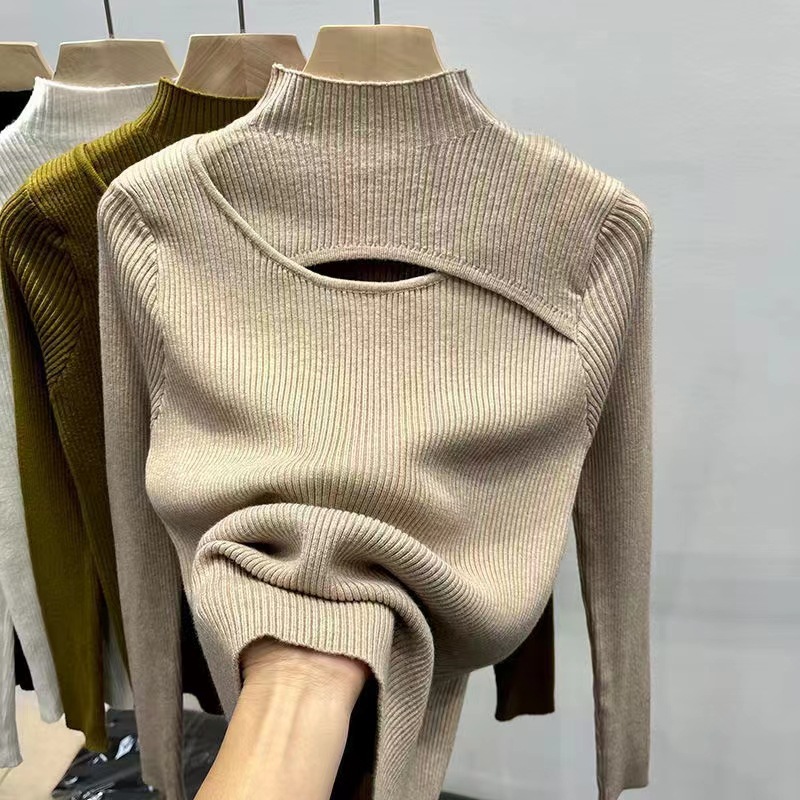 하프 하이 칼라 베이스 셔츠 여성의 가을과 겨울 2023 새로운 할로우 아웃 디자인 센스 틈새 디자인 미드 넥 스웨터 니트 탑스토어 가기