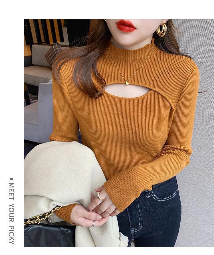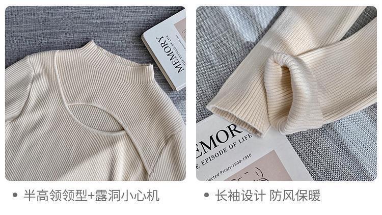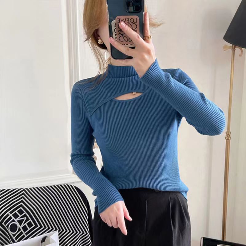 하프 하이 칼라 베이스 셔츠 여성의 가을과 겨울 2023 새로운 할로우 아웃 디자인 센스 틈새 디자인 미드 넥 스웨터 니트 탑
