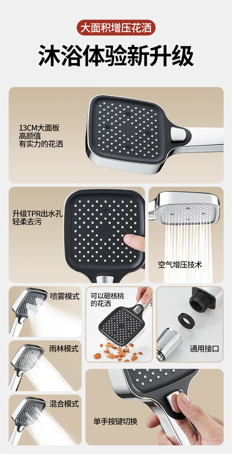 거친 구멍 대형 콘센트 샤워 노즐 슈퍼 압축 샤워 헤드 가압 가정용 욕실 샤워 세트